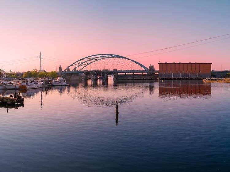 Why is this route nice? Nighttime views of Boathouse Row and the Philadelphia skyline, rowers on the river during the day and industrial architectural remnants (for those with a niche interest)