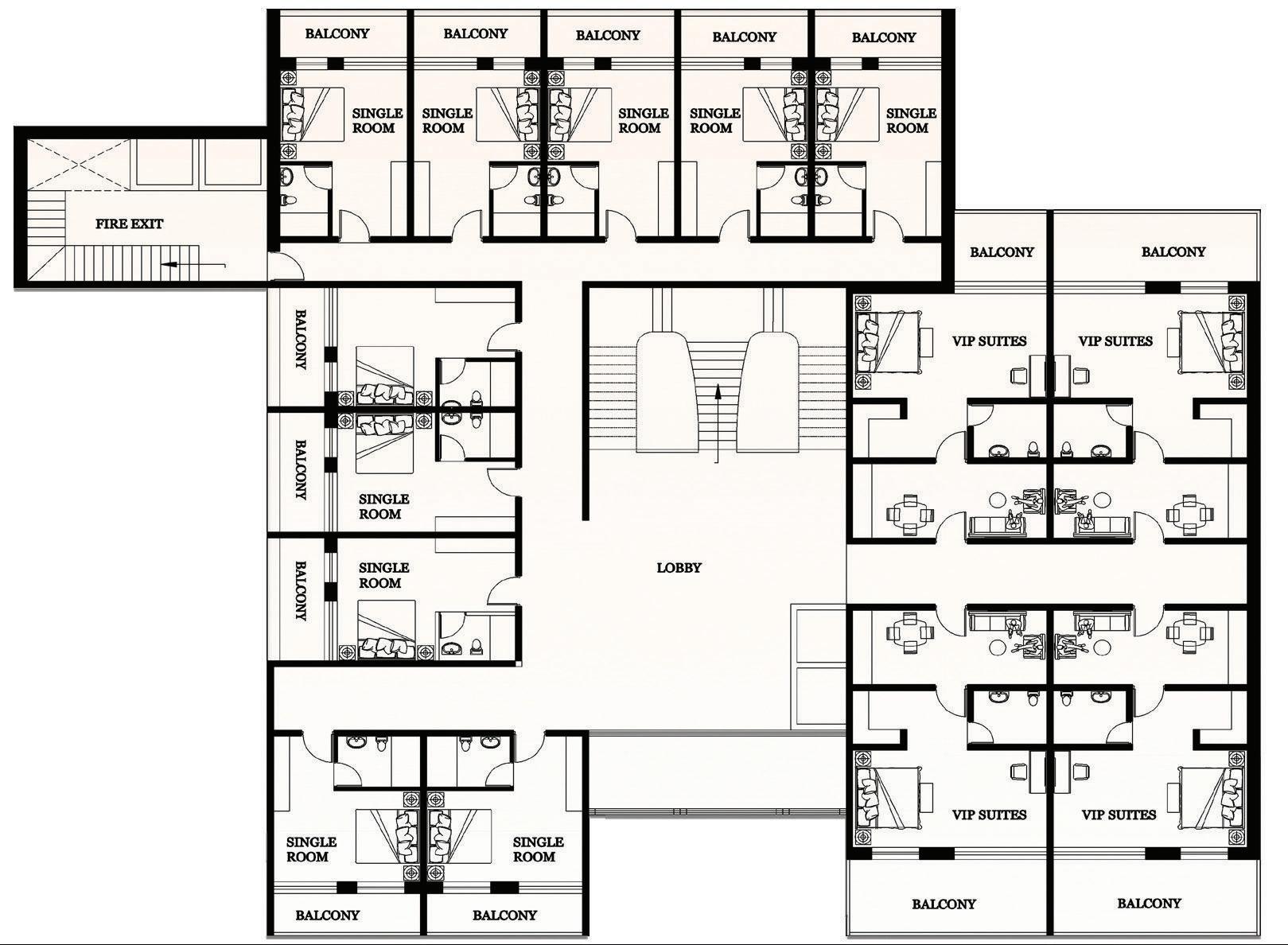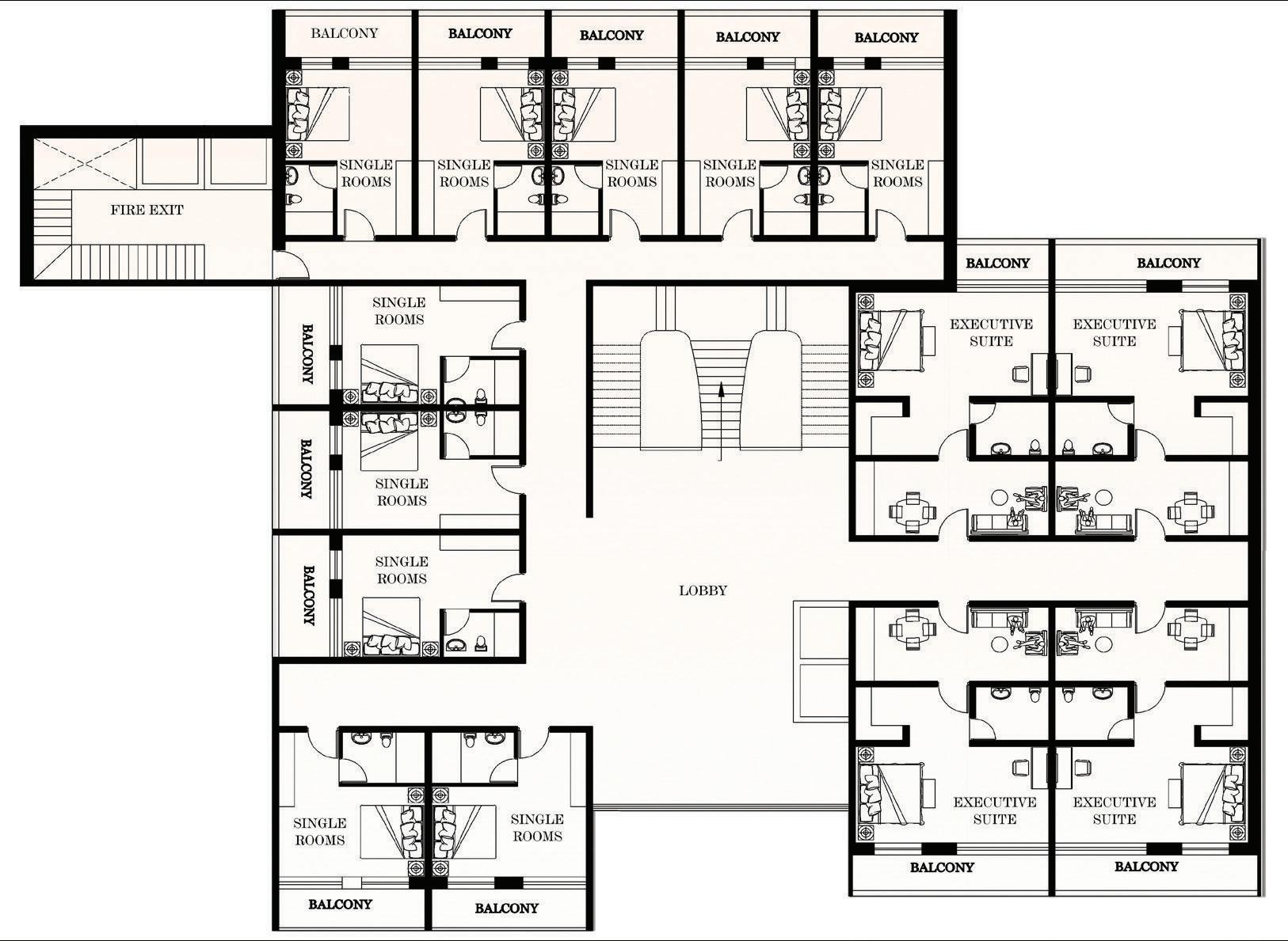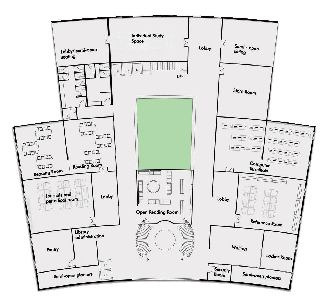 • The project aims at looking at spatial composition of Building complexes at an institutional scale. It also aims at looking beyond built and interaction amid the open spaces formed between and beyond the Building Blocks.
