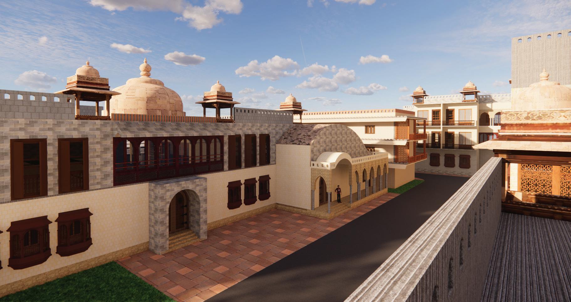 • Courtyard act as the transitional space for reducing the overcrowding and acting as a Transitional spaces having their own identity but at the same time provides symbolic connection to the two spaces that are trying to bring together.