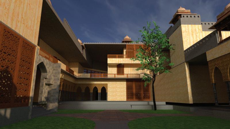 • Central Courtyard in the convention centre block connecting two main spaces of Restaurant and the functional spaces.