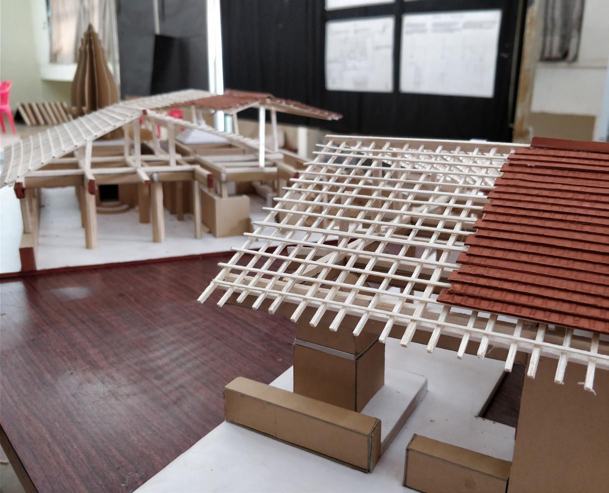 To figure out whether these designs would work or not, models on a smaller scale were made using straw and bamboo sticks.