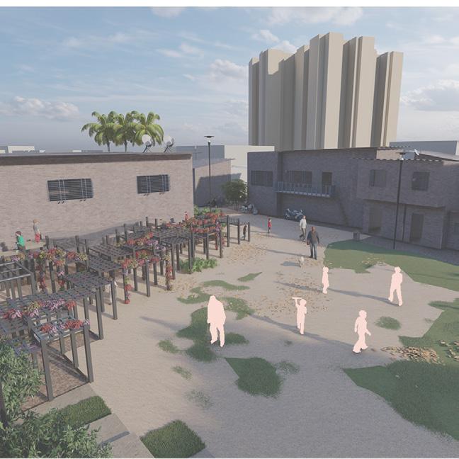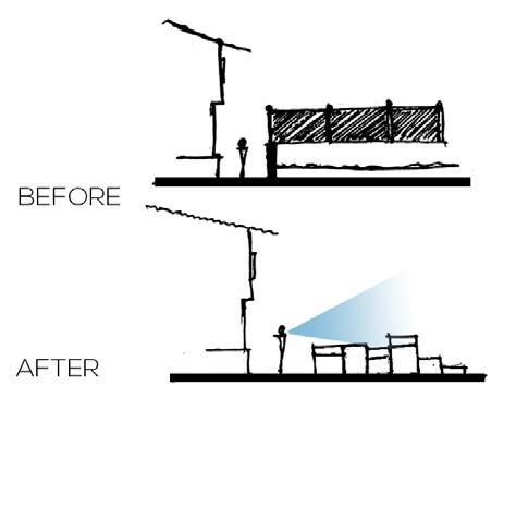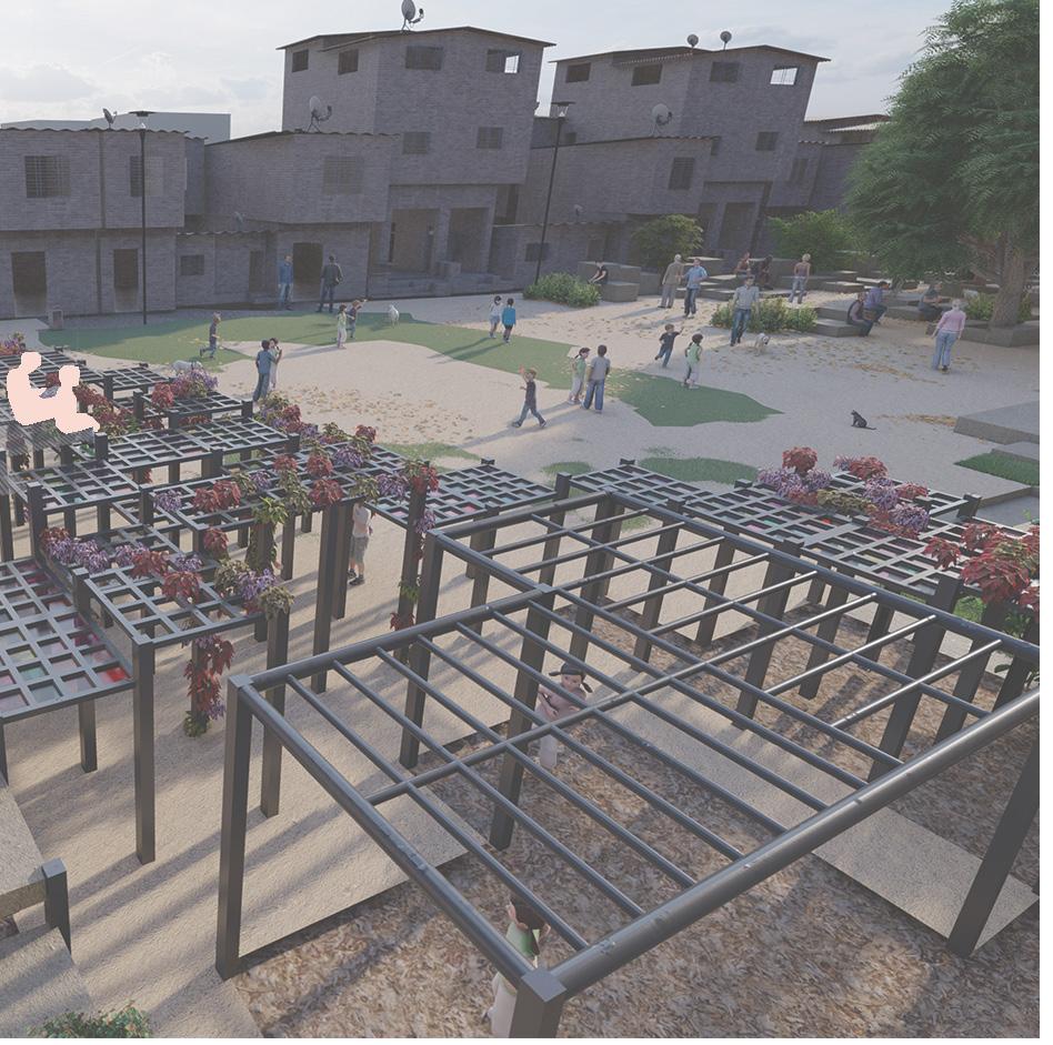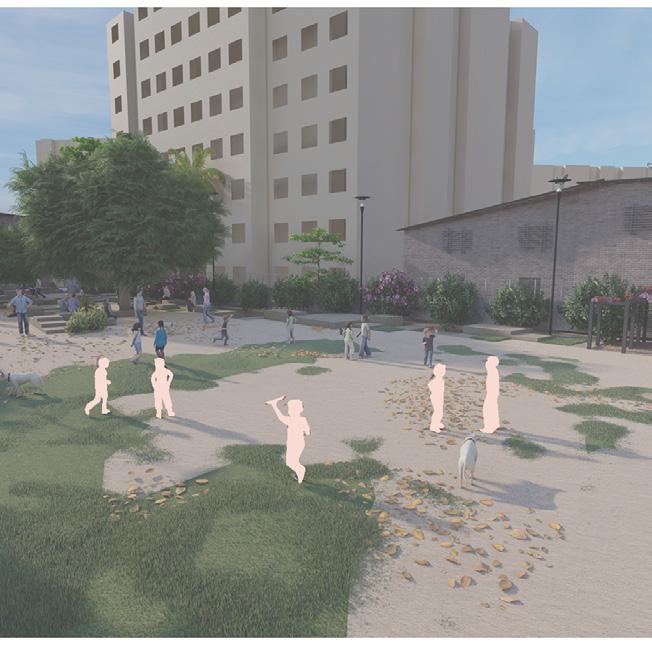 The existing compound wall is re-designed to make the park more accesible to the residents and break the existing visual barrier.