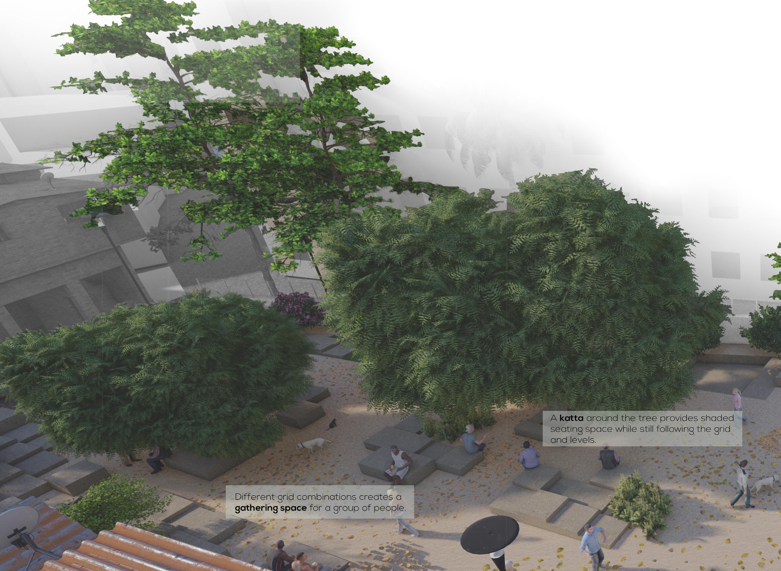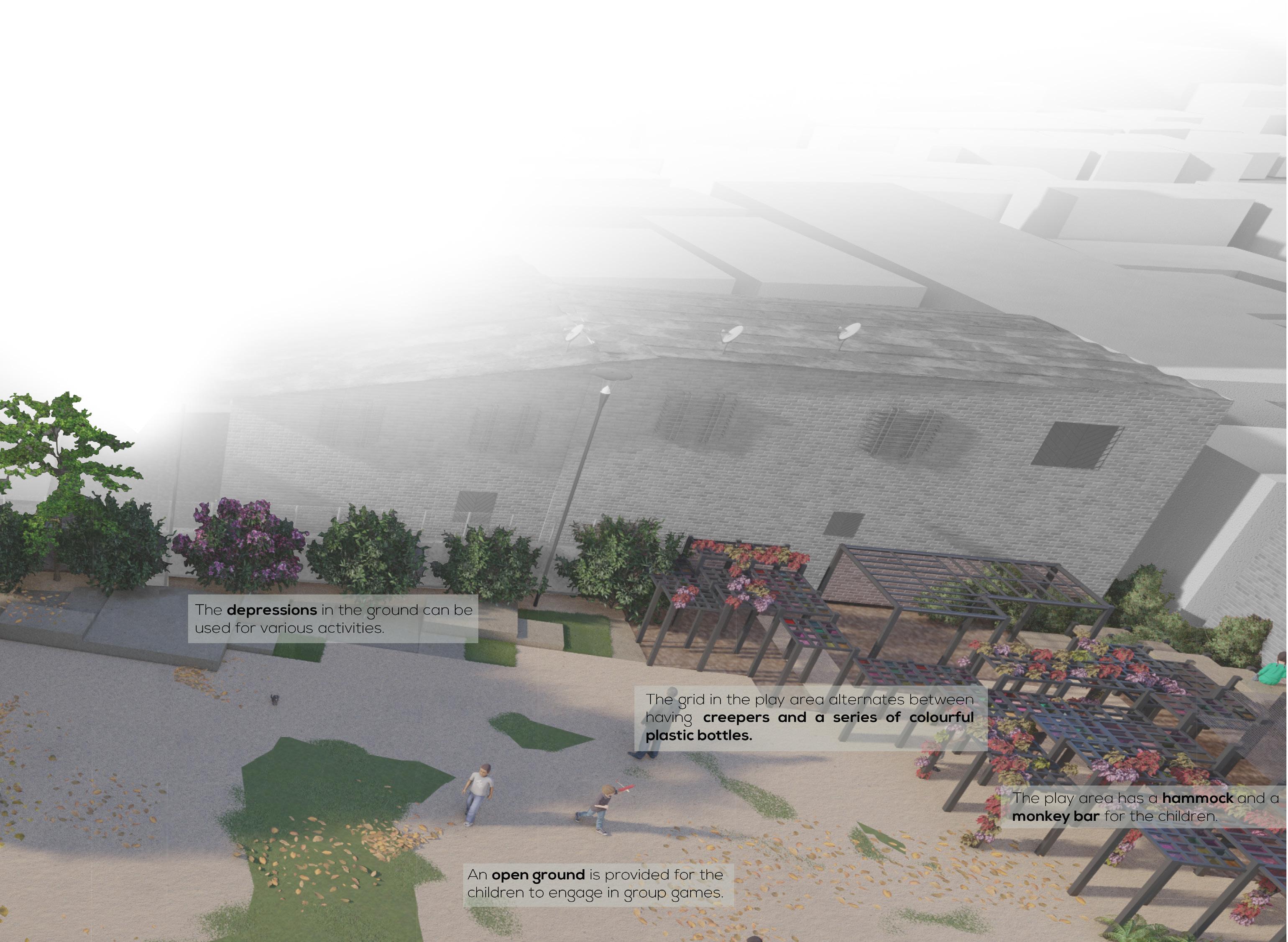 The levelled seating aims to replicate the skyline of Dharavi as well as making it more interactive for the users.