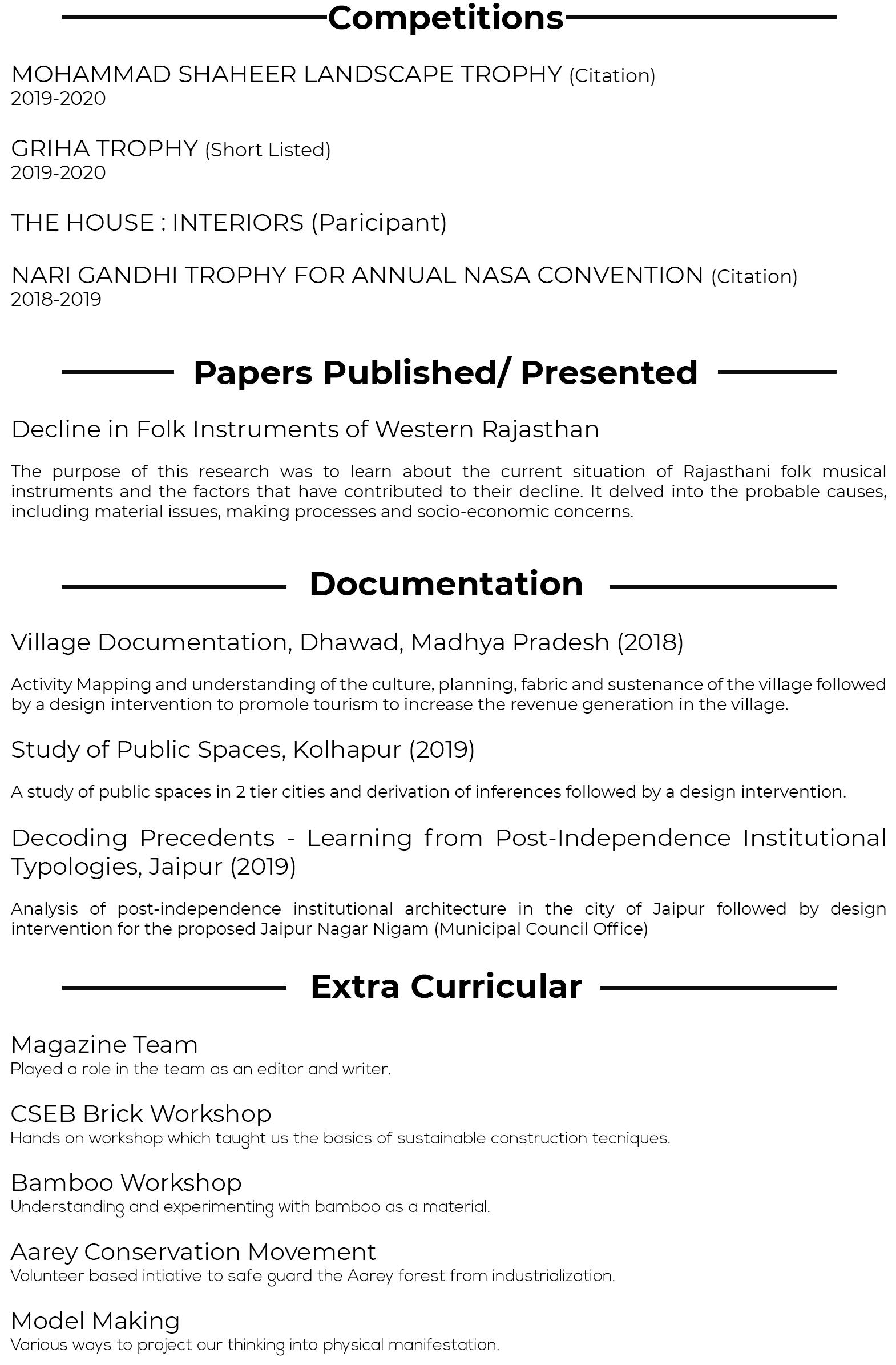 This section showcases all the competition entries, snippets of professional work and extracurriculars attempted since the beginning of Architecture.