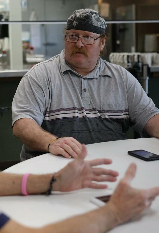 He’s proud of the food he helps prepare. “We eat better here than most people do at their house! We make food with love for these guys!” He recited the menu he’s made recently, venison steaks, spaghetti with homemade sauce, bacon cheeseburgers and stuffed cabbage rolls. They have Fish Friday, salmon, lake trout and shrimp scampi. Shawn says, “If we’ve got it in the freezer and can cook it, I’ll make it.”