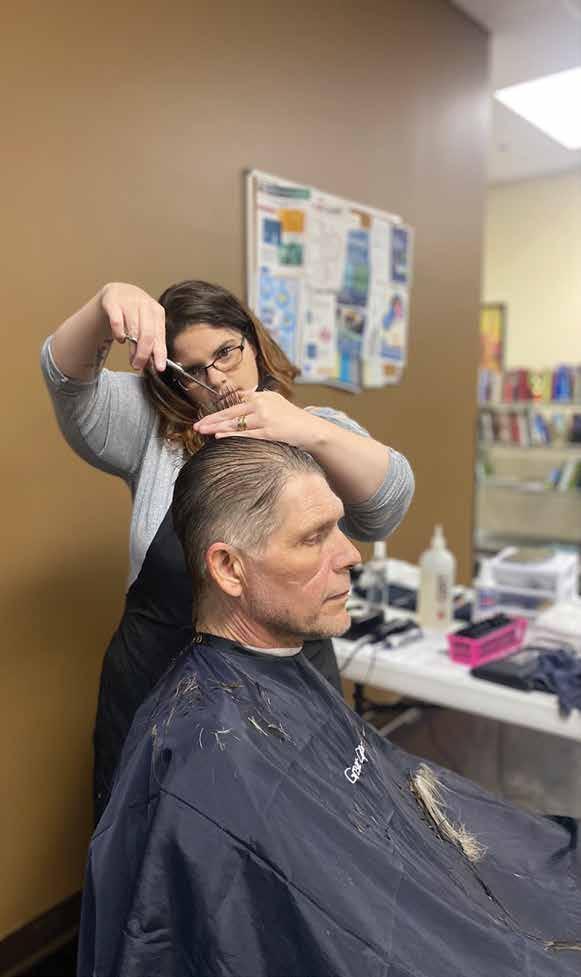 the local salon has provided onsite haircare service only for Muskegon Rescue Mission. They usually see between ten and twentyfive men, depending on the season. When asked why they provide this special service, Rachel replied, “I have personally dealt with life’s hardships and know what it’s like to have nothing and to feel broken. I have a soft spot for these men and want to show them a little kindness, to see them smile.” She continued, “Sometimes these guys just need to be heard, to share their story and be seen.”