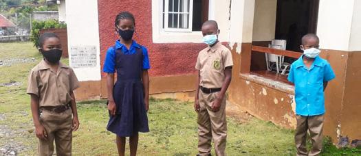 Students from rural St. Thomas are pictured outside of the Cedar Valley Primary School at the launch of the TEAM Remote Learning Initiative.