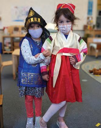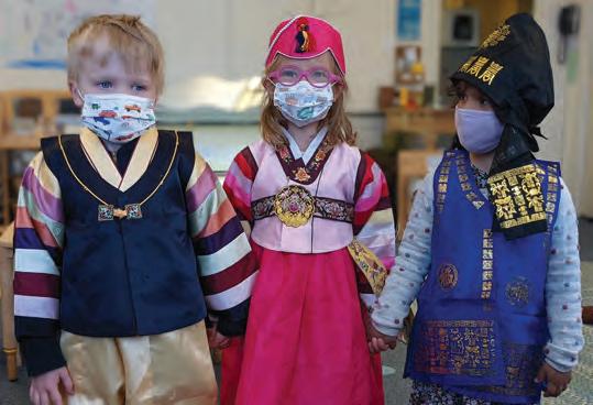 For the 2021-22 school year, Ms. Jordan was interested in expanding her students' perception of royalty. She had observed that her students—in keeping with popular society—were increasingly confining their view to the narrow, sparkling pink definition of princesses marketed by Disney. Students sometimes arrived at school dressed as specific Disney princesses, and were well-versed in Disney lore. In her monthly work with Director of Diversity, Equity, Inclusion, and Belonging (DEIB) Director Tania Ora-Hahn on curriculum examination, Ms. Jordan discussed enriching her students' study beyond the Eurocentric frame of reference. She devel oped a plan with her assistant teacher, Hwa Young Gluckow, who happens to be a descendant of the former royal family of Korea! Ms. Gluckow’s mother’s great-aunt, Empress Sunjeonghyo, was the last reign ing queen of the Korean Empire. Having recently read The New York Times article generated by the new Apple TV + series Pachinko entitled One Garment’s Journey Through History, Ms. Jordan was already aware of the cultural importance of the Korean hanbok Ms. Ora-Hahn suggested changing the word “castle” to “palace.” While this could appear to be an infini tesimal modification, the recommendation had wide-reaching impact: This change opened the worlds of Africa and Asia for consideration. Students perused picture books of traditional Grimm fairy tales like The Twelve Dancing Princesses that presented illustrations of African royalty in palaces. They read The Korean Cinderella, heard Ms. Gluckow’s firsthand accounts, learned a Korean bow, and viewed her historical
