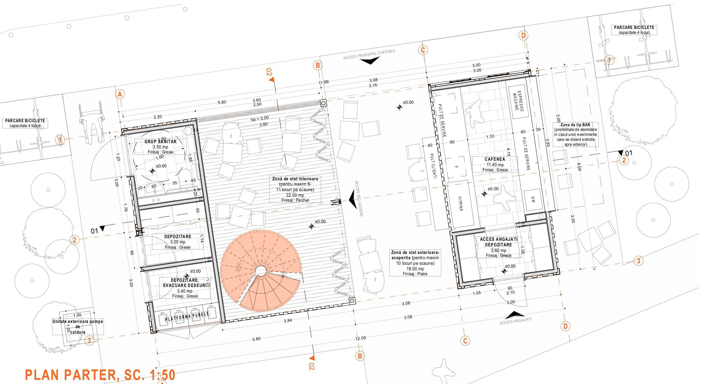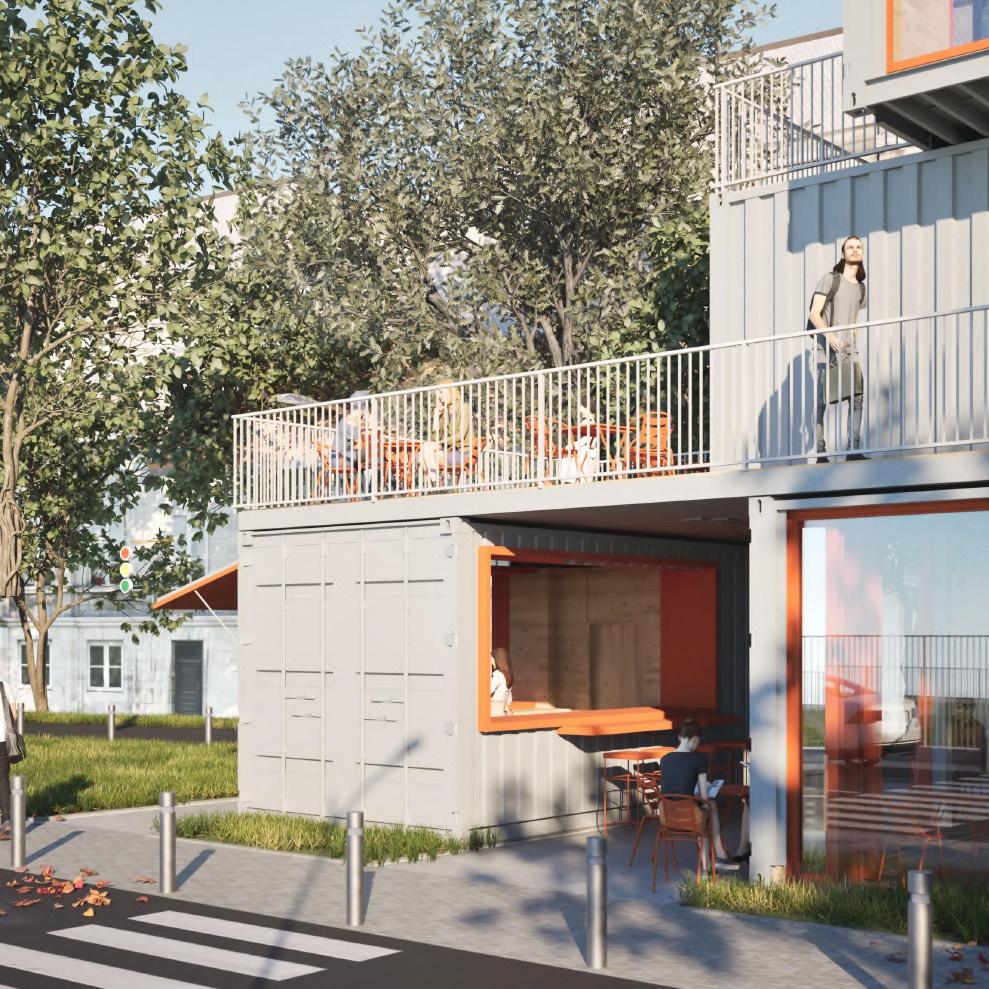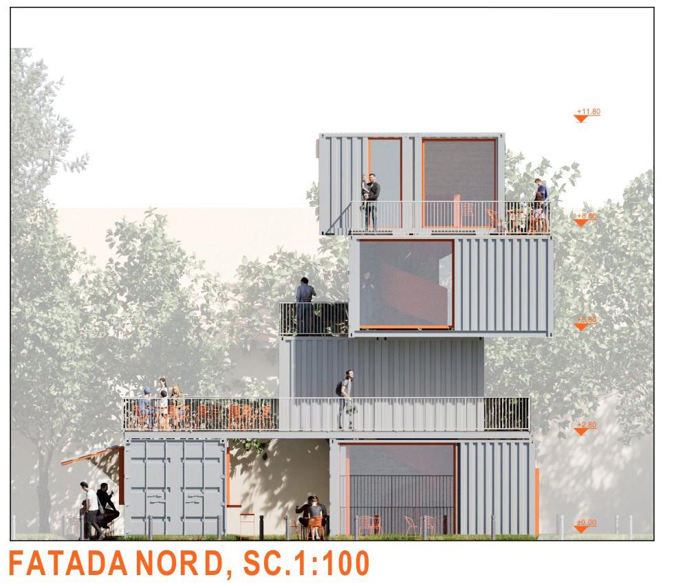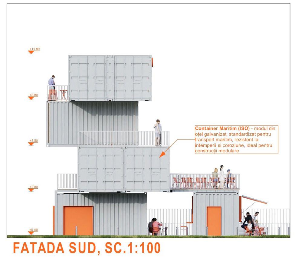 The use of shipping containers represents an ecological solution, contributing to the recycling of existing materials and reducing the building’s carbon footprint. This solution is not only environmentally friendly, but also offers remarkable flexibility and adaptability. The café’s modular structure allows for easy modifications and expansions, so the space can be adjusted according to the needs of events and the preferences of customers.