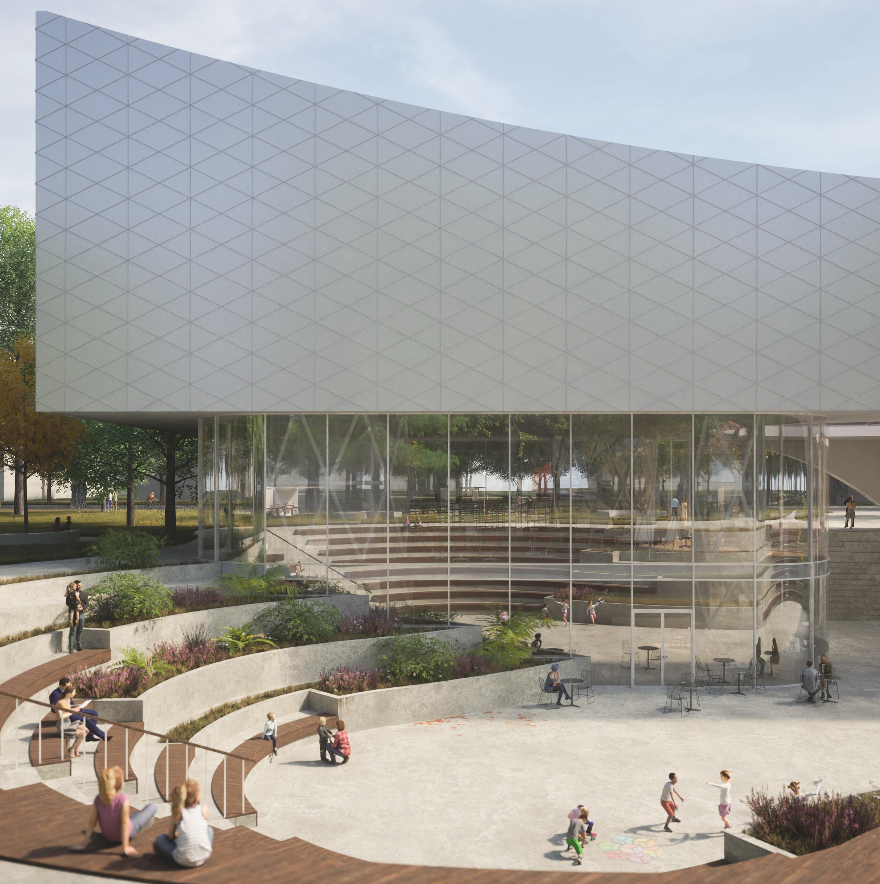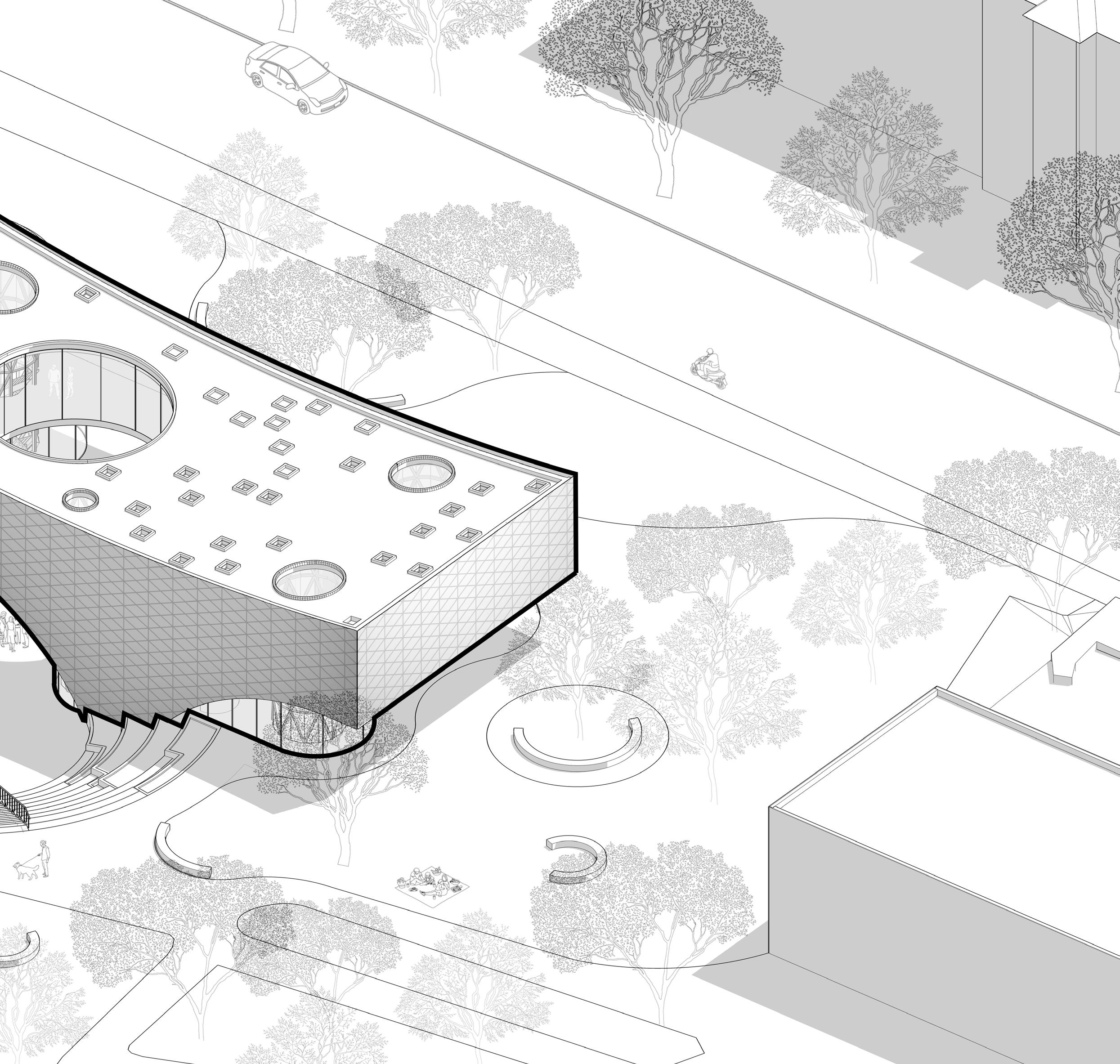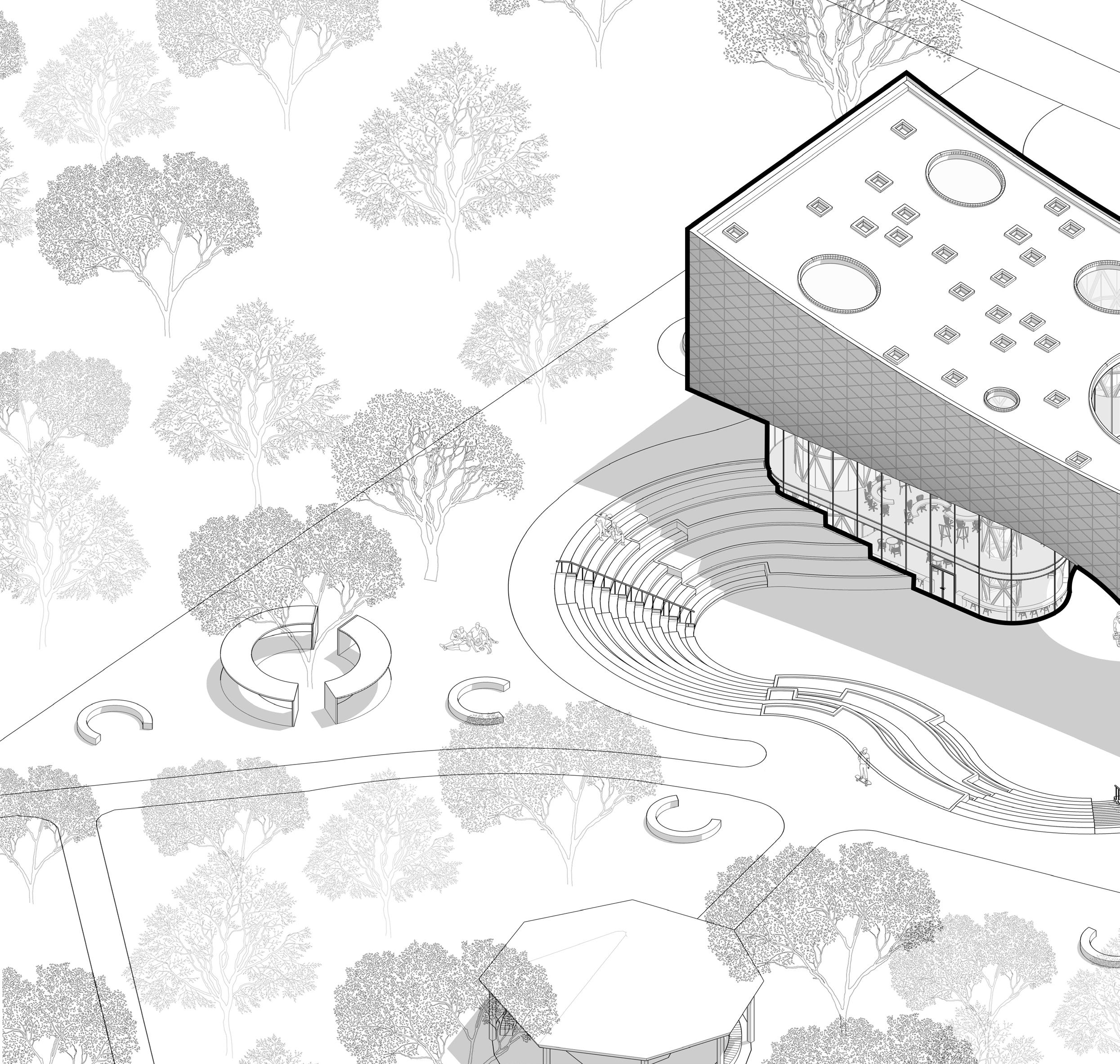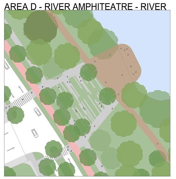 AXONOMETRIC VIEW OF THE RIVERBANK AMPHITEATRE AND WOODEN DECK