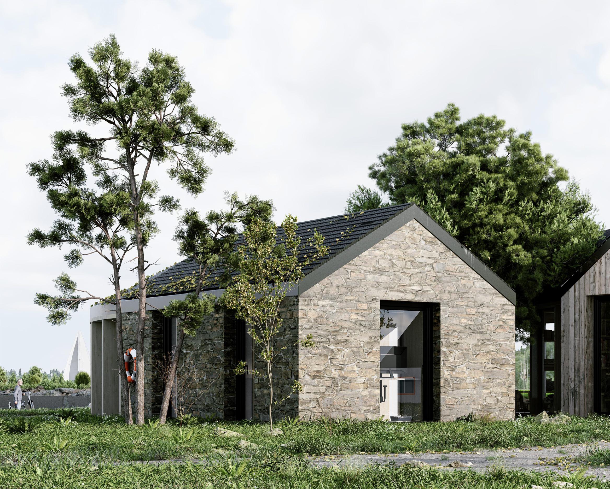 Easdale, an island on Scotland’s west coast, symbolizes resilience and regeneration. Once called “The Island that Roofed the World” for its slate industry, its fate changed after a tidal wave in 1881. Today, the abandoned quarries are tranquil pools, and the slate-roofed houses tell a story of coexistence between man and nature. The project was inspired by this unique, secluded site, accessible only by water, offering an opportunity to integrate architecture into a region rich in history and tradition. The project centers on two ideas: using local slate as a tribute to tradition and creating architecture that harmonizes with the landscape. We preserved the proportions of the existing building’s facade, reinterpreting them into a contemporary form.