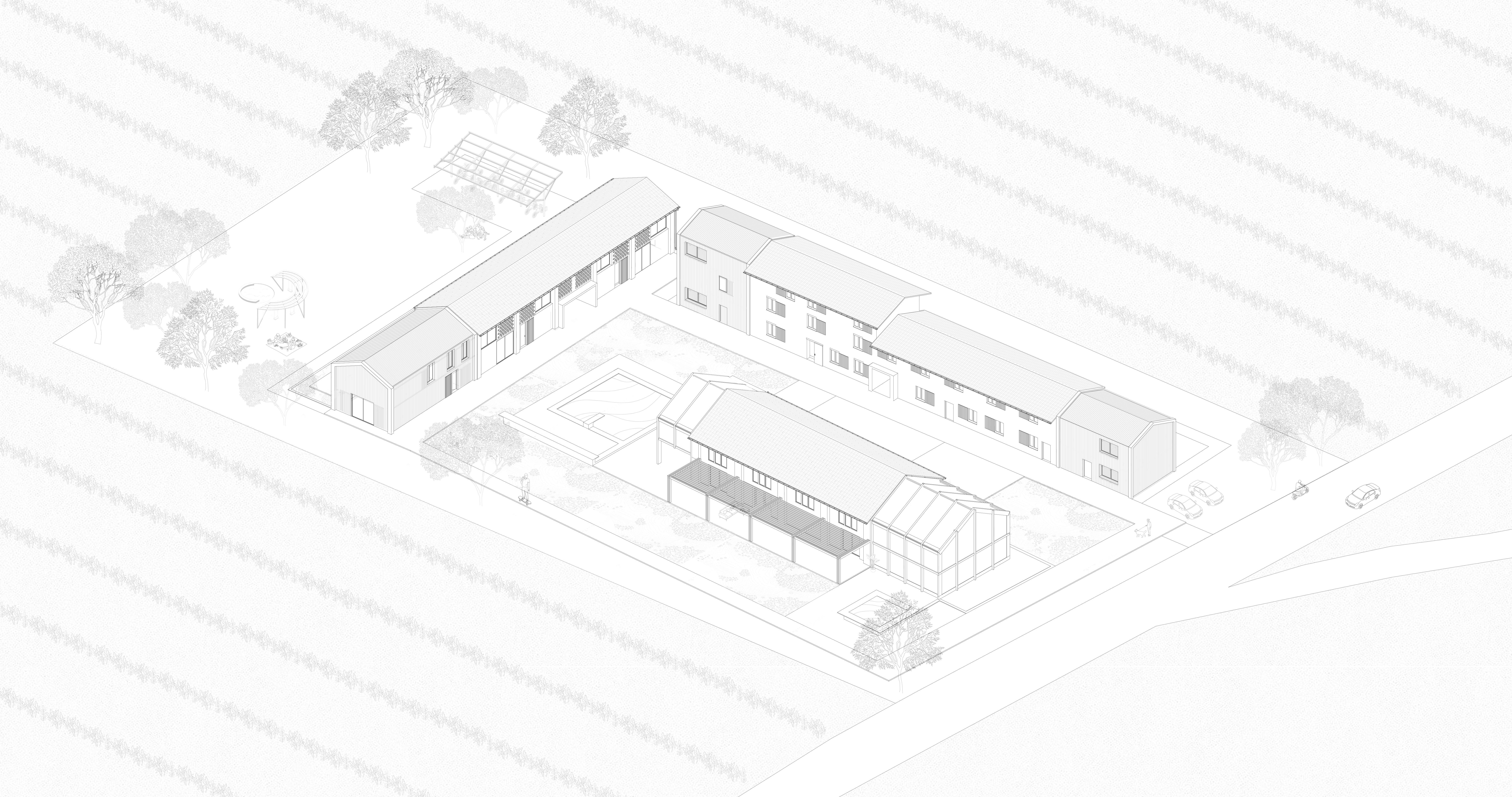 The project aims to integrate basic principles, which will create quality long-term living, seeking to intertwine individual needs as well as those of common interaction, taking into account the specific typology of “cascina” constructions, the local context and the principles of sustainable development. From the current planimetric format, the buildings that define an “L” shape on the site, the former building intended for sheltering the horses and the structure behind the site, that will be used as a covered bicycle parking lot, will be kept. The new L-shaped configuration will be used for living and the old stable will be repurposed for common spaces.