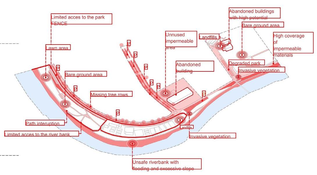 THEME: Landscape and urban project, reactivating and reconnecting the Marconi riverbankwith the city.