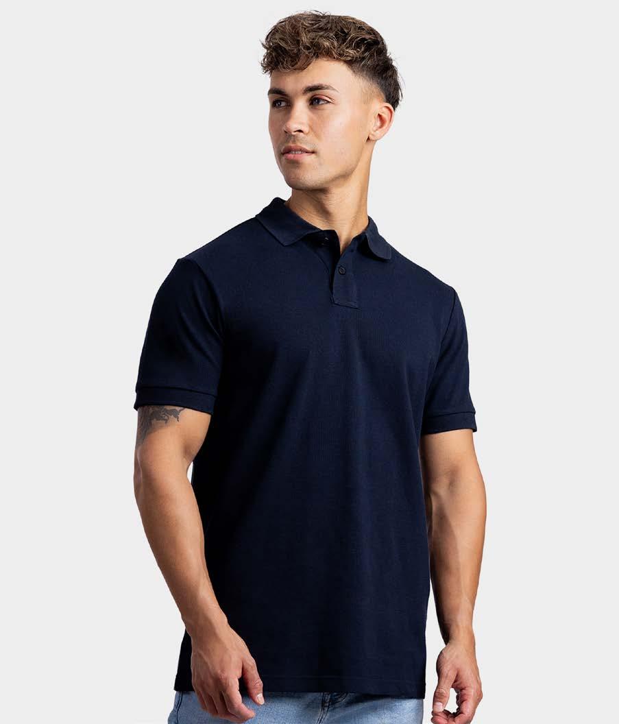 Basic cotton elastane polo, longer length and stretch for a comfortable fit.