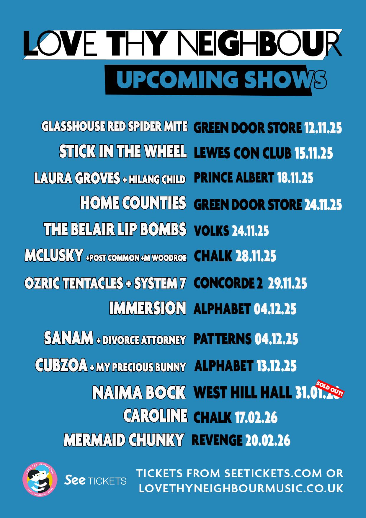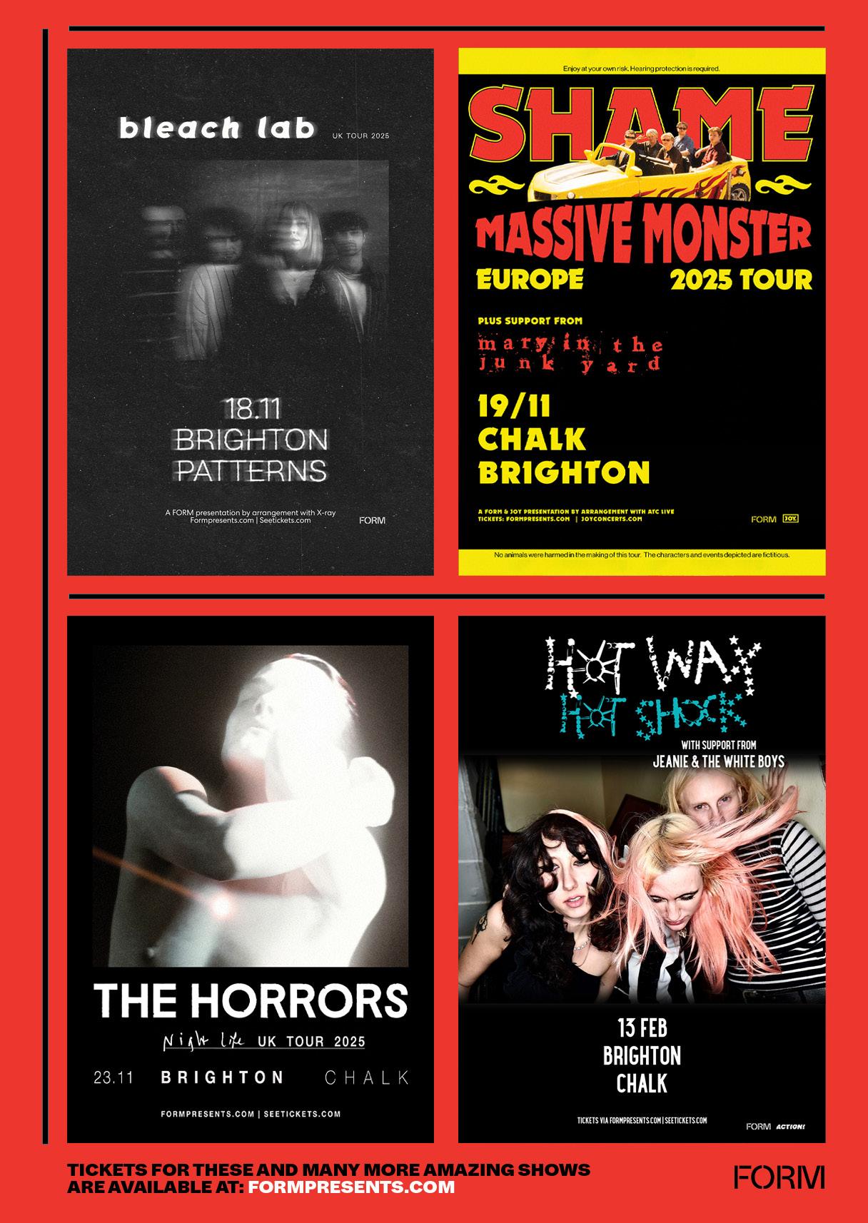 Firstly, thank you for being here - this weekend, Mutations Festival returns for its seventh edition, and we couldn’t do it without you! We’ve poured so much into this year’s line-up, and we’re so excited to bring you a stacked weekend showcasing 87 of the most explosive artists around, from established voices to brand-new international artists, all performing across 9 of the city’s most treasured grassroots music venues. This year, we’re especially proud to bring you Brighton’s very own homegrown headliner Lambrini Girls!