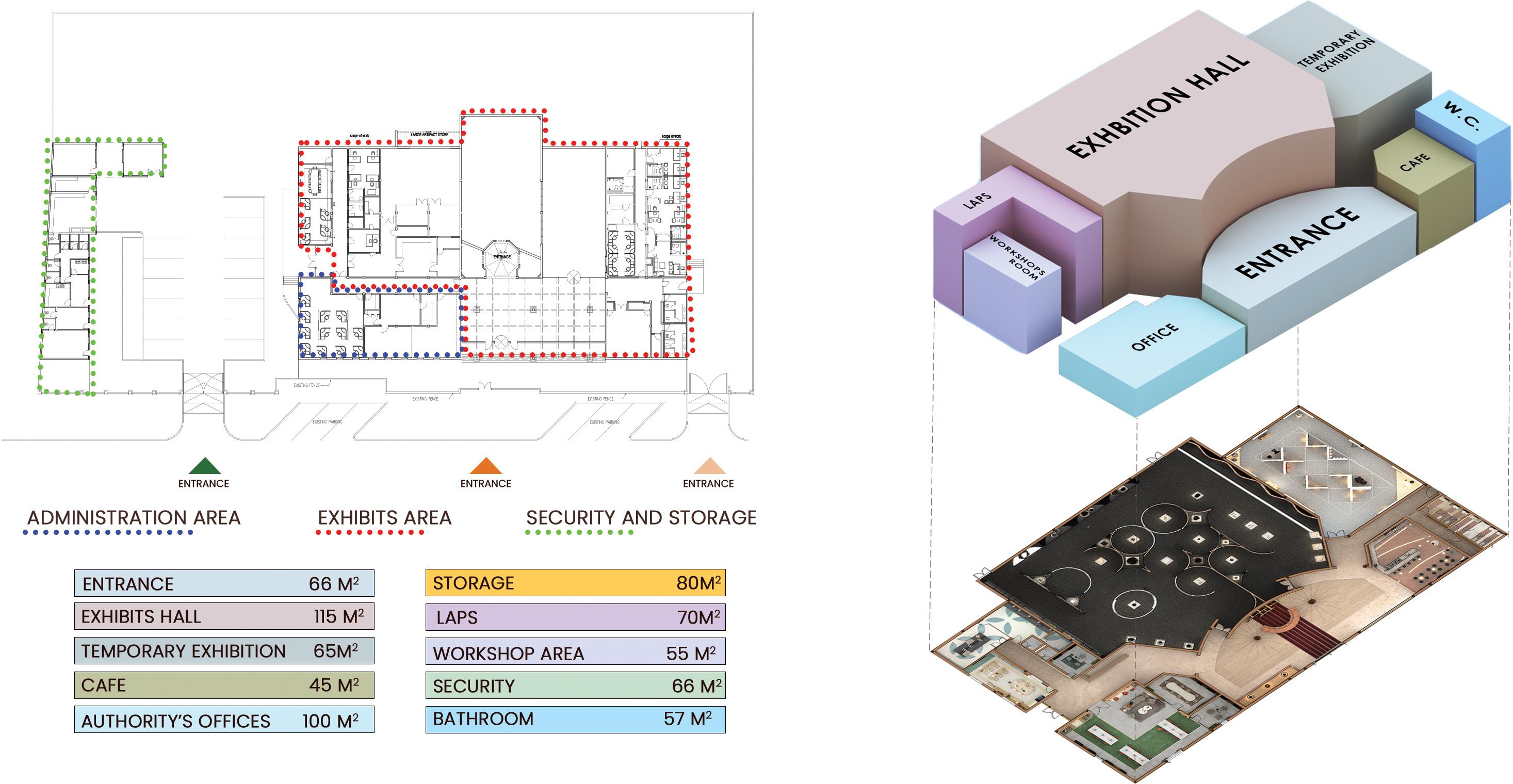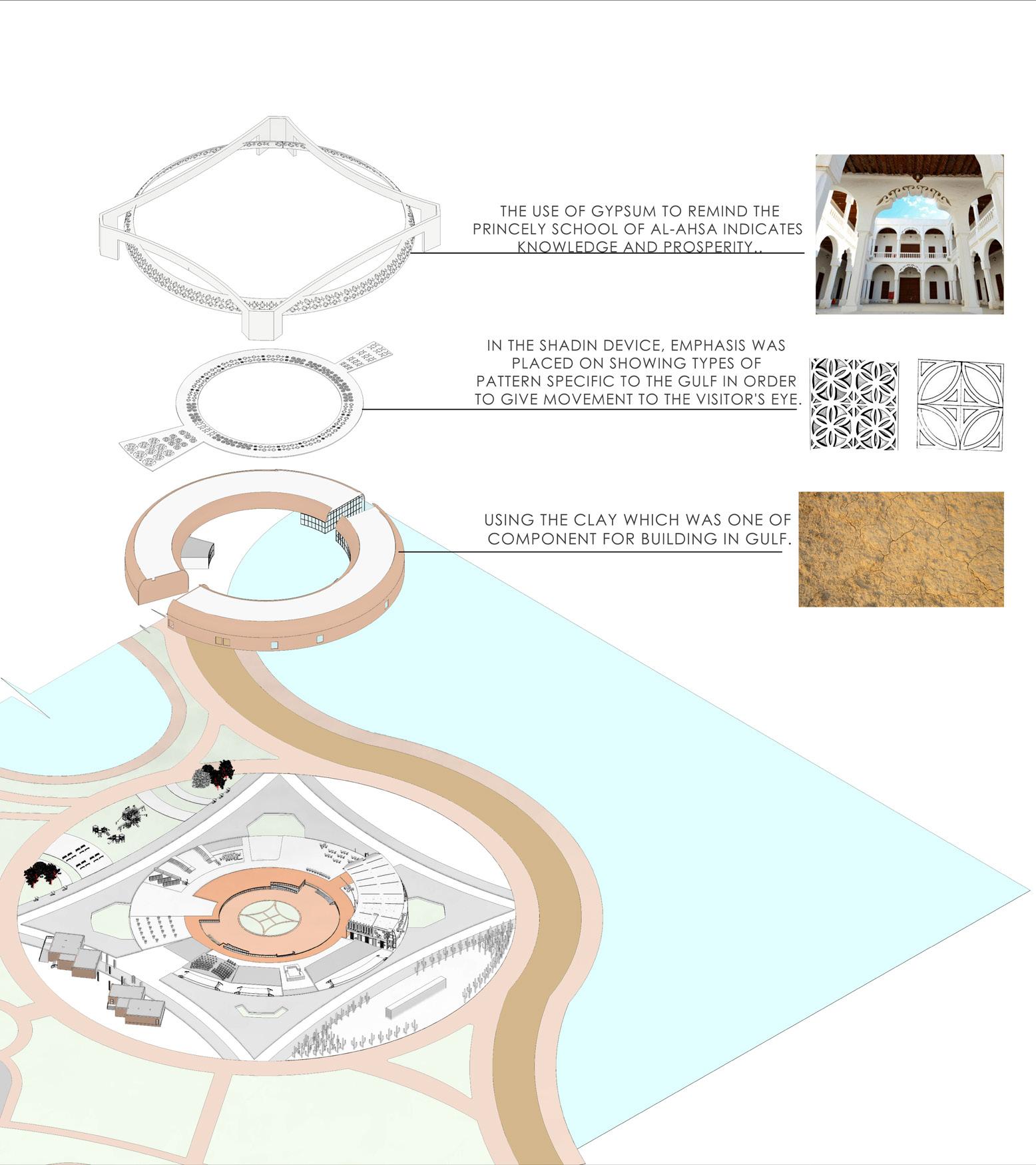 The concept of the museum is to create a pattern that connects the five senses with each other and the interaction of the visitors with the museum and linking the museum with the local elements to give a sense of interdependence between the building and the surrounding environment by highlighting some of the various terrain features of the area (oasis - mountains - agricultural areas) in a modern and appropriate way with the present Using local materials in an unusual way.