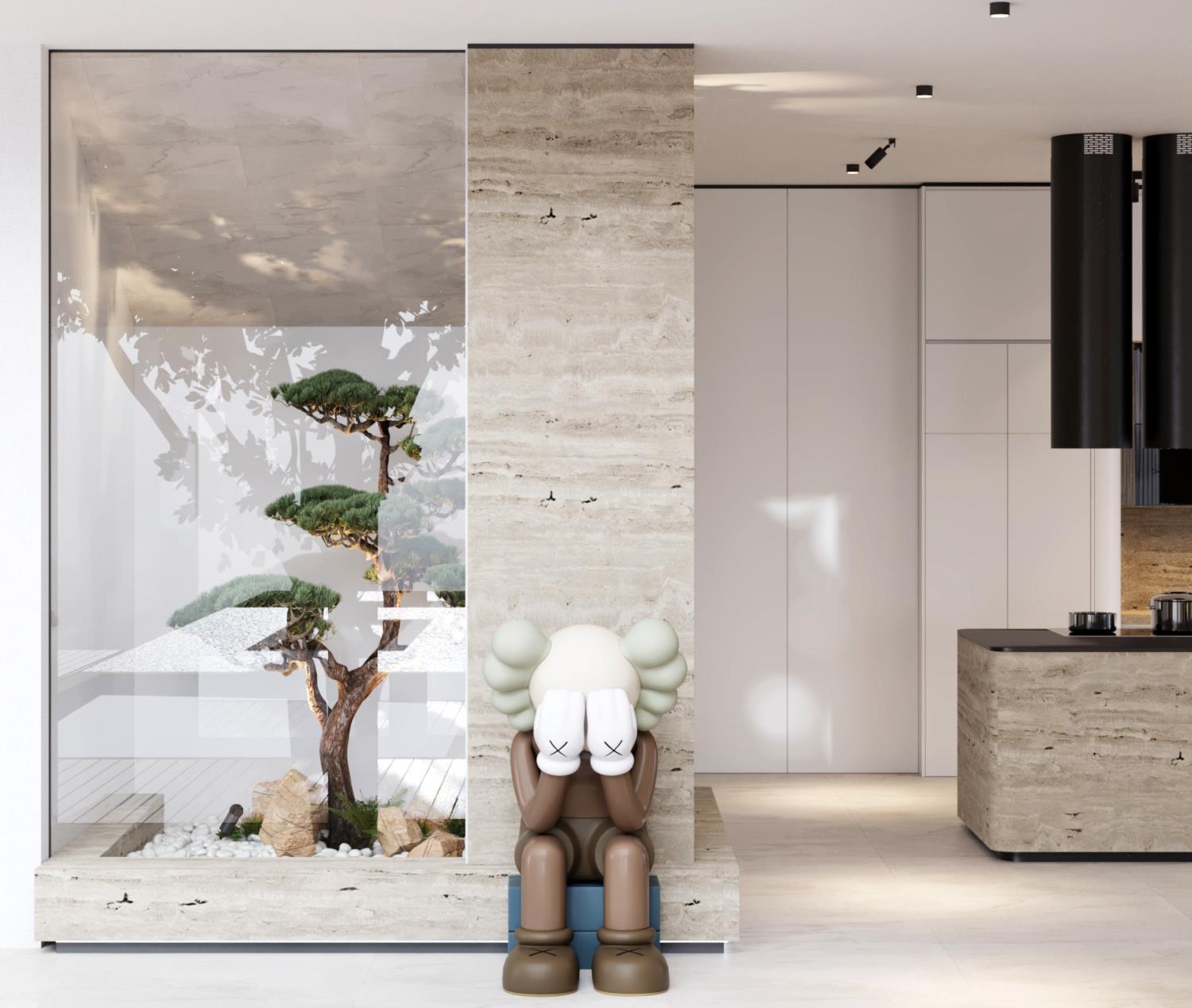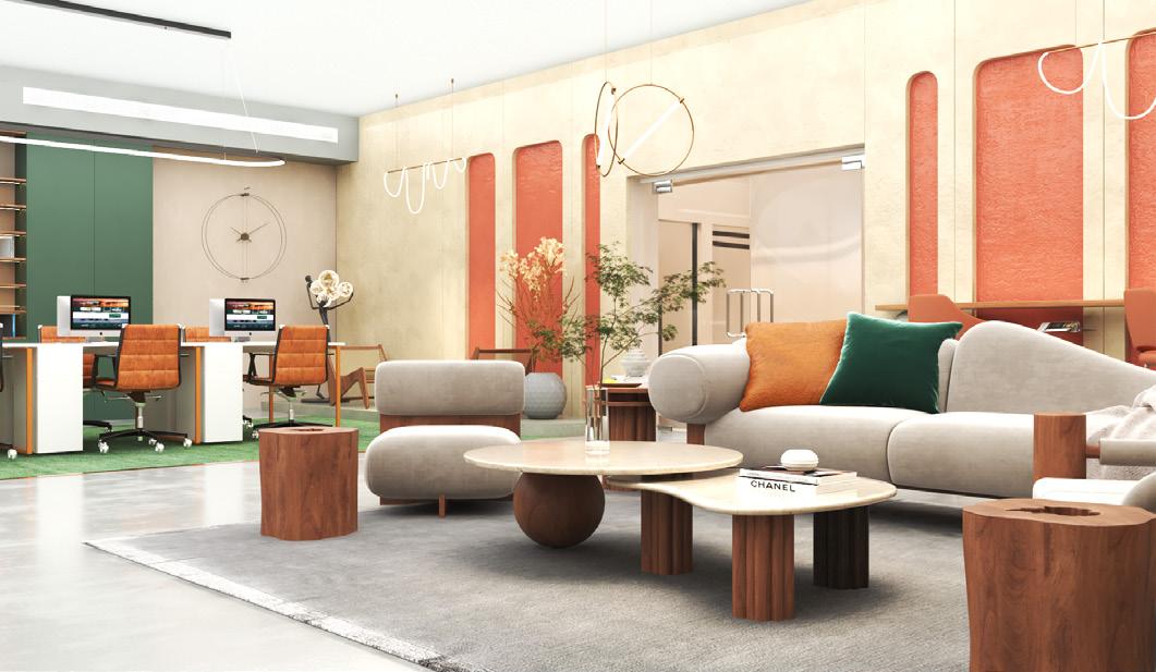 Central to the concept is the integration of natural elements, particularly clay paint and walnut wood, to emulate the organic beauty of lemon tree branches. The clay paint adds texture and depth to the walls, creating a tactile experience that evokes a connection with nature. Meanwhile, the warmth and richness of walnut wood accents infuse the space with a sense of earthiness and tranquility.
