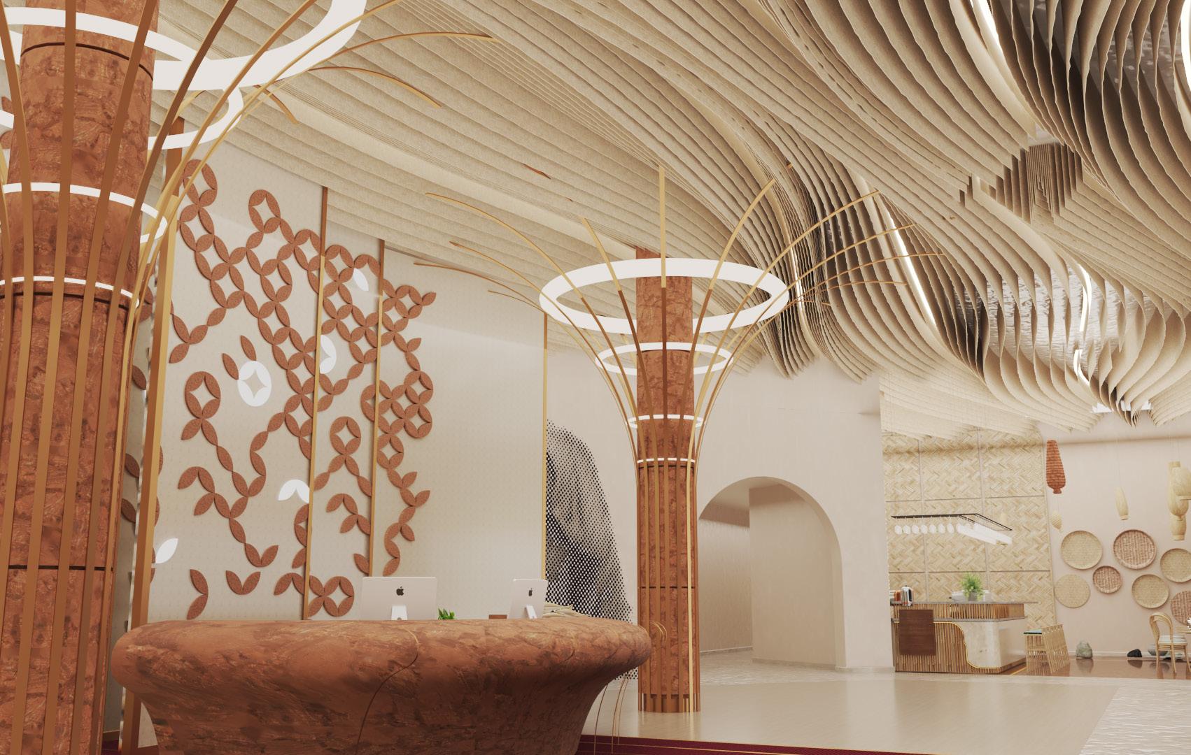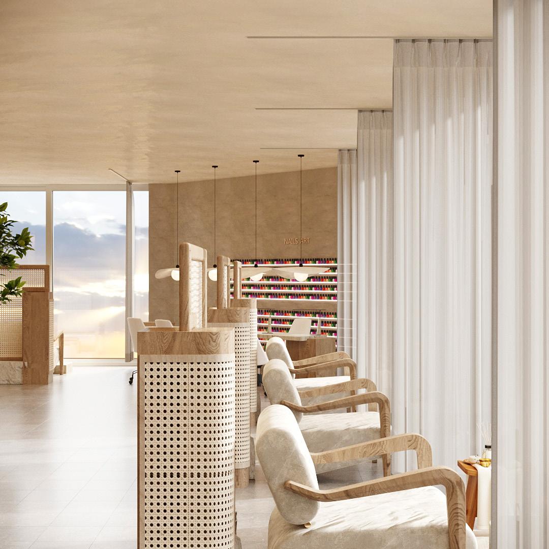 The concept revolves around redefining the user experience within the spa, immersing visitors in a serene and natural ambiance reminiscent of lounging under a lemon tree. This is achieved through the strategic use of materials and design elements.