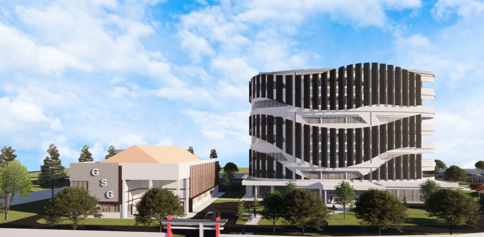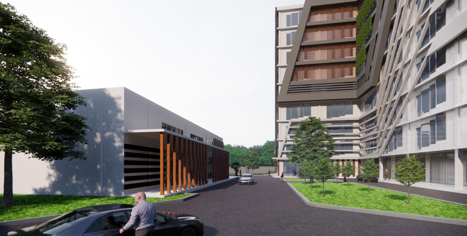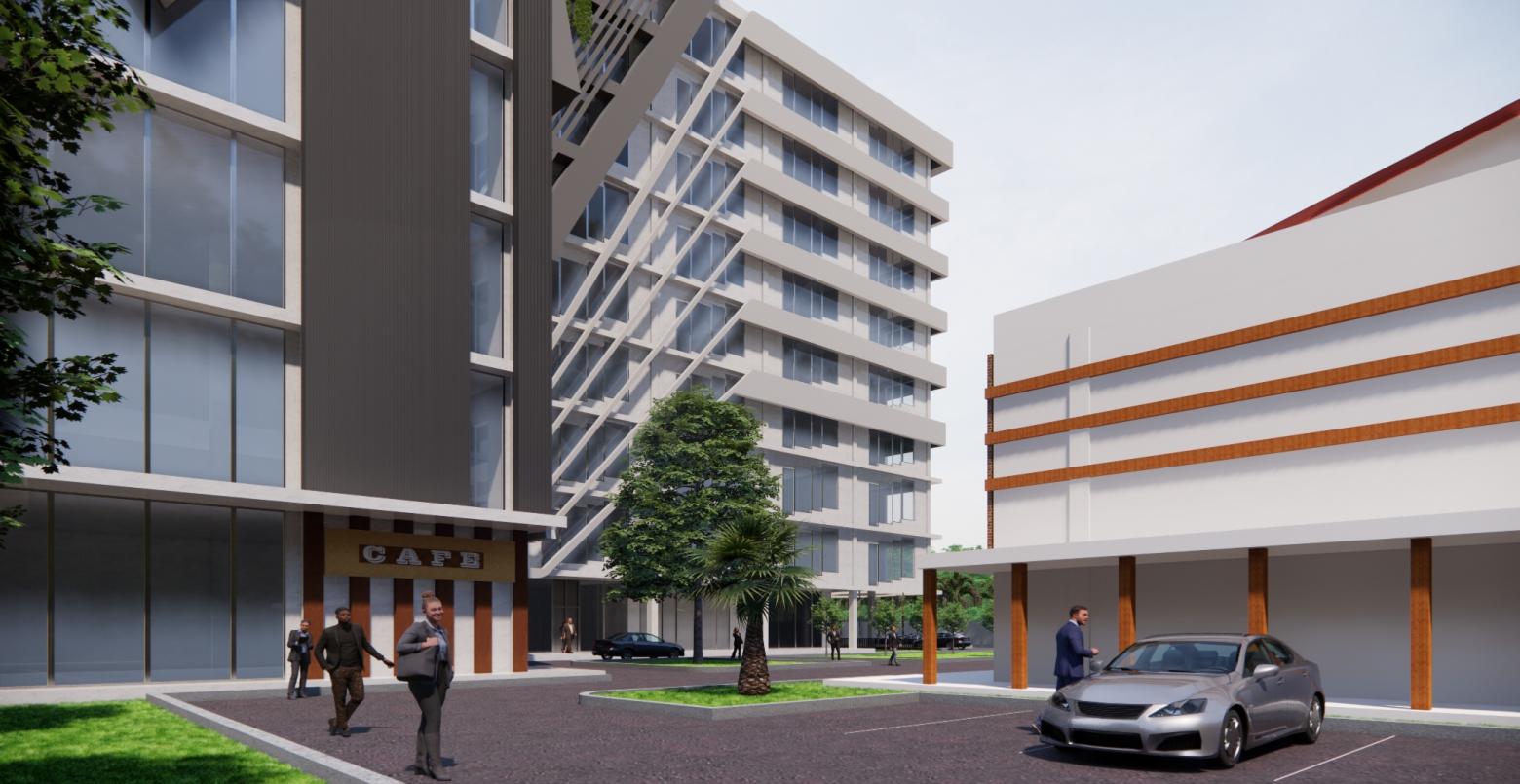 Dibangunpadalahansekitar9000m2,yangberlokasidi jl.TerusanRyacudu,LampungSelatan,Lampung. Bangunaniniadalahbangunan komersialyangberfungsi untukmewadahisegalakegiatanwarga sekitarmaupun pendatangyangberhubungandenganpekerjaan administrasiperkantoran.Padapembagianya,1bangunan kantorterbagiatas3zoningdenah,padaarea basementmerupakanareauntukparkirindoorbagipara pengunaterutama penyewayang datangPadalantai tepatdiatasbasement,terdapatareapenunjangseperti cafetariadanareapenunjanguntukkeperluanibadah, selainituterdapatpulaareasewayangdiperuntukanbagi parapenyewabesarLantaidiatasnyamerupakanarea ruang kerjakantorsewayangsecaraumumruangdapat disewakanper-ruangmaupunmerlantai,karenakanntor sewainimenggunakansistemkantorsewamajemuk, terdapattigaruangpokokyaitusmall,mediumdanlarge.