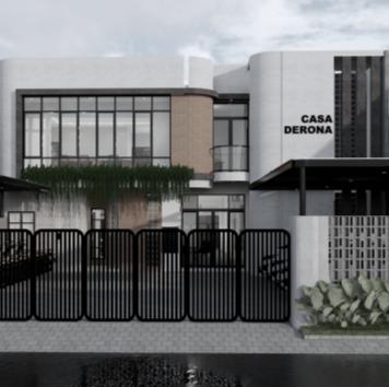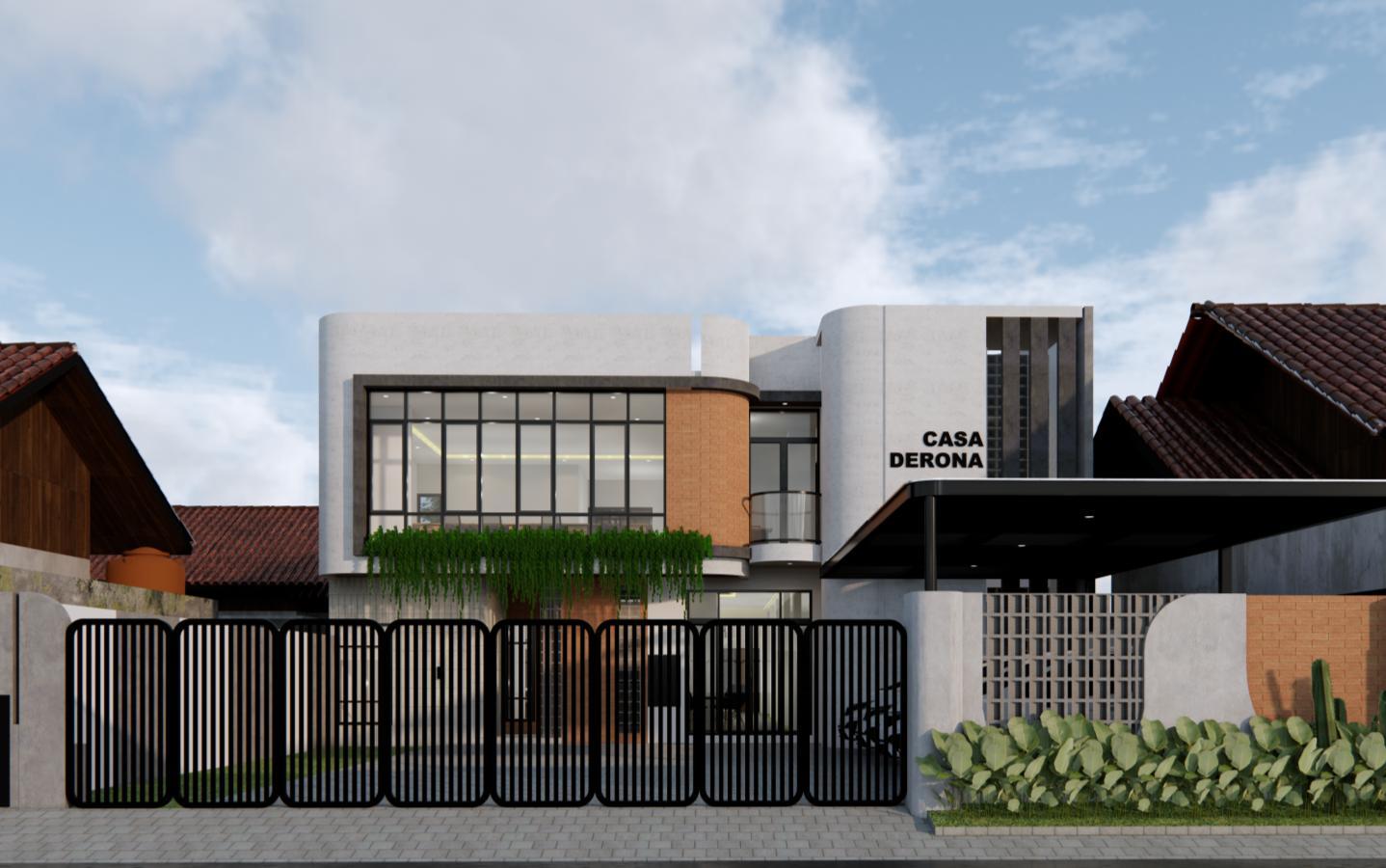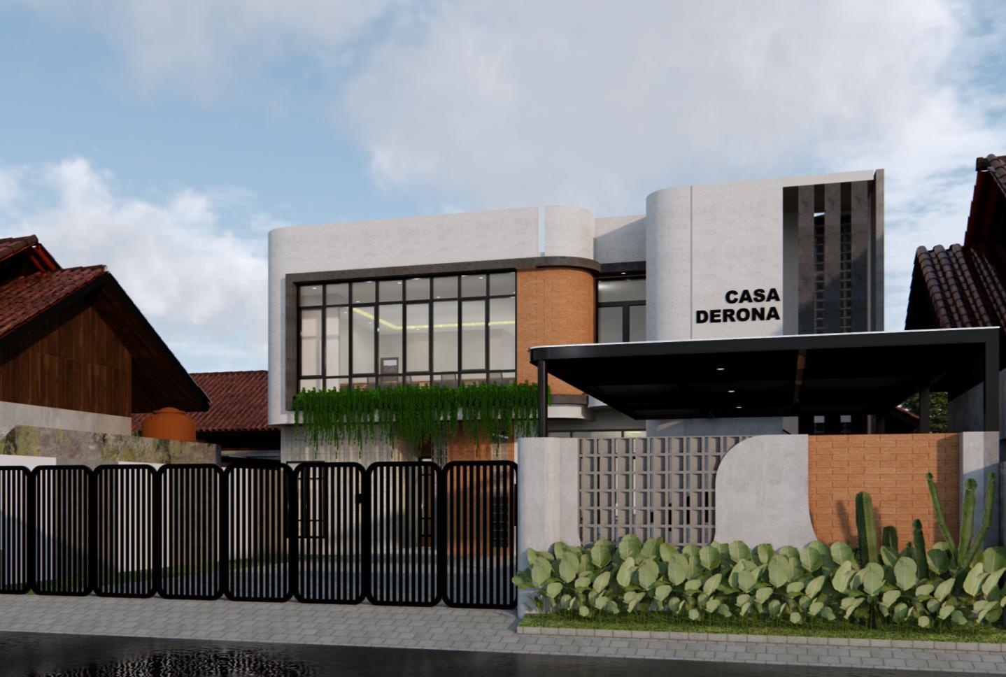 Casaderona is a multifunctionalbuilding,featuring a private residence on the first floor, and boarding rooms and an office on the second floor. The facade design plays with curved elements to create a distinctive architectural form.