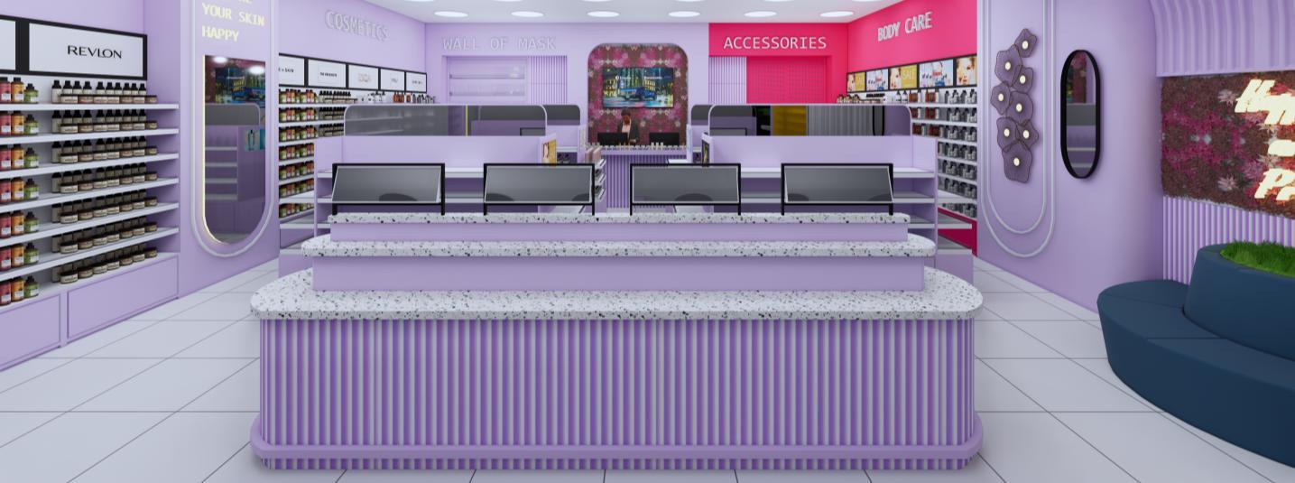 Aboldfaçade,pastel interiors, and a clean layout Glamora’s beauty store design reflects the charm and confidence of every woman it serves.