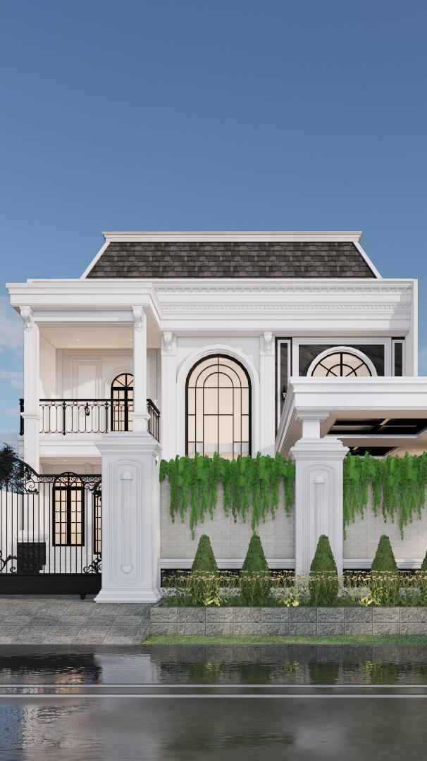 Atwo-storyclassicalhomewith symmetrical composition,Corinthian columns,and a timeless white palette designed to impress from the very first glance.