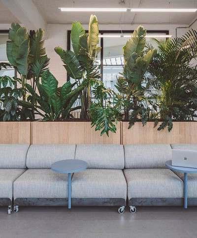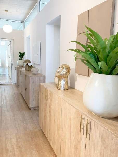 Proponemos nuevos muebles que ayudarán a delimitar los distintos sectores: un mueble impulsivo para ordenar la circulaciónde la zona de cobro y un mueble separador que hará de filtro entre el minimarkety lacafeteríaatravésdelaincorporacióndeplantas.