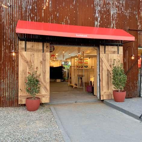 3 4 5 Fachada Roja Plantas chicas medianas Toldos con Logo Toldos con Logo Logo con Planta Macetón con Planta