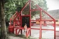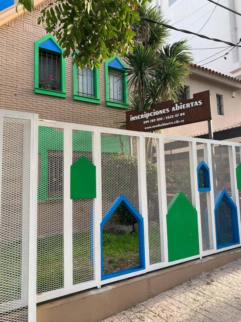 Para el diseño tomamos como punto de partida algunos de los detalles de la fachada antigua que evocaban a un Castillo, como el remate de la cornisa y la moldura de la ventana de planta baja. También tomamos como elemento a repetir los bajo relieves existentes en forma de escudo o casitainvertida,agregándolosaldiseñodelanuevarejaparaincorporarlaescaladelniño.Estascasitascuentancondistintasfuncionalidades:un buzón para el correo, una pajarera para incentivar el contacto con la naturaleza y un par de puertas para que los niños puedan entrar y salir por las mismas. De esta forma se logró un elemento con personalidad Mundo Chiquito, llamativo desde la acera y que conforma una fachada dinámica queinvitaaljuego.