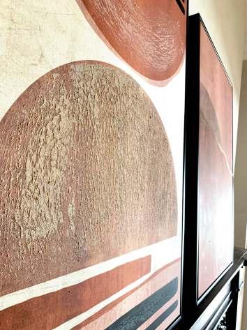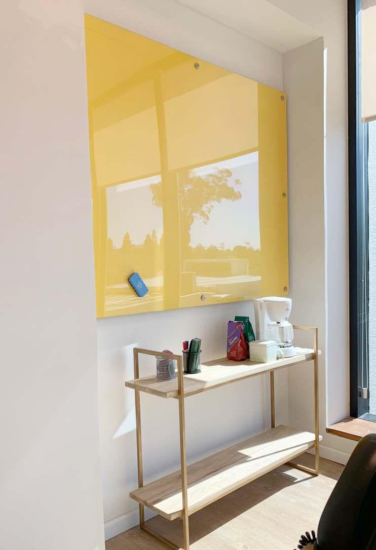 Nuestra idea principal dentro del proyecto fue generar continuidad entre ambos espacios de forma que se pudiera mostrar el trabajo de la artista. Para lograr esto decidimos remplazar una pared por un cerramiento vidriado que separarayalavezpermitieraunirenocasioneseltallerconelrecibidor.
