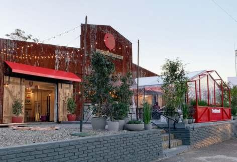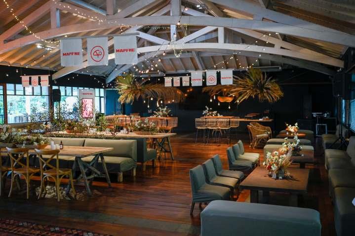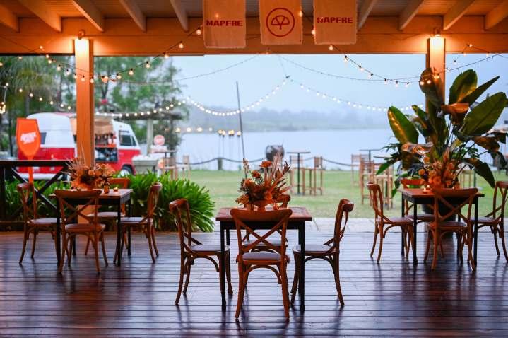 En el espacio exterior generamos un sector de sombra con un living para los expositores y aprovechamoselperímetrodelpredioparaincorporarmásespaciosdeuso.