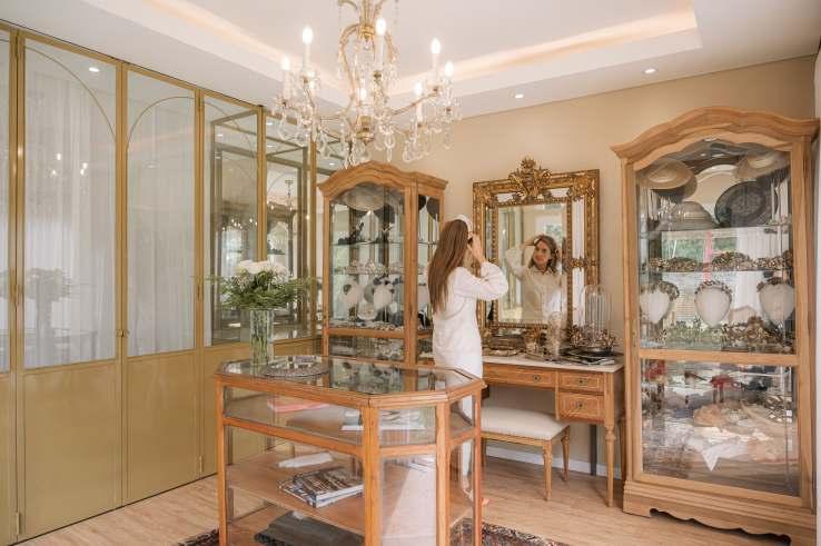 Un cerramientoseparaeltallerdelrecibidory permitelavisualdesdeunespacio al otro a través de los paños vidriados. Existe la posibilidad de filtrar dicha visual cuando se requiere mayor intimidad con un cortinado de gasa. Este cerramiento a su vez lo diseñamoscomoexpositorde los sombreros adquiriendovolumenen sus dos extremos. La parte superior funciona como vitrinas para las que diseñamos estructuras que permitieran exponer en distintos niveles La parte inferiorlapensamoscomoespaciodealmacenaje.