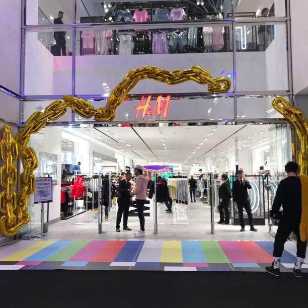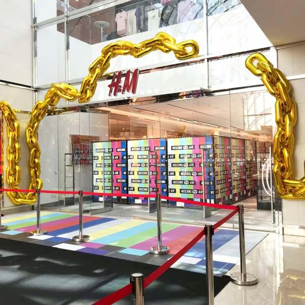Trabajamos junto a Estudio Claro en el diseño y la instalación del evento de Moschino [TV] H&M en el local de H&M instalado en Montevideo Shopping para esta colección que evocaba a los años 90. En la ambientación destacaron las cadenas gigantes doradas, característico de la marcaMoschino,realizadasconglobosdehelioencadenadosyunapuestaenescenaconloscoloresdelasbarrasSMPTE.