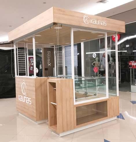 Realizamos el diseño y la ejecución de la isla ubicada en Las Piedras Shopping. La misma debía resolver en 5m² los distintos aspectos que hacen al funcionamiento de un local: Mayor porcentaje de exhibición posible, almacenamiento parare-stockyelementospersonales,cajadecobro,iluminación,carteleríaycerramientodeseguridadparalanoche.