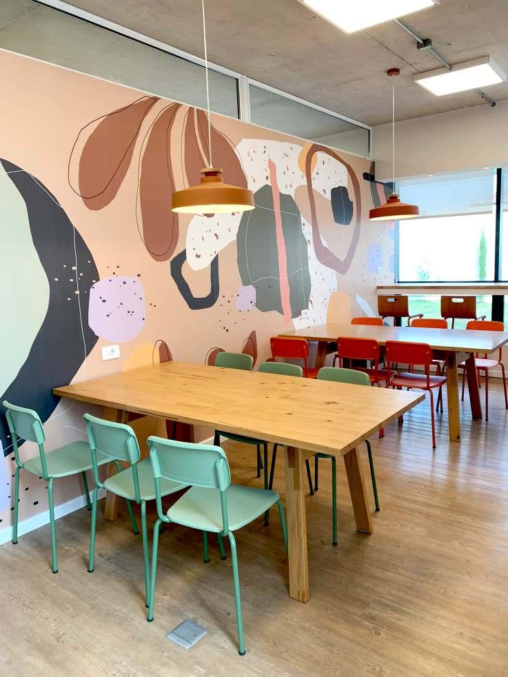 Priorizamos la aplicación del color azul en el exterior para tener mayor visibilidad de marca a lo lejos, y buscamos aportar tonos más cálidos en el interior para generar espacios más acogedores.