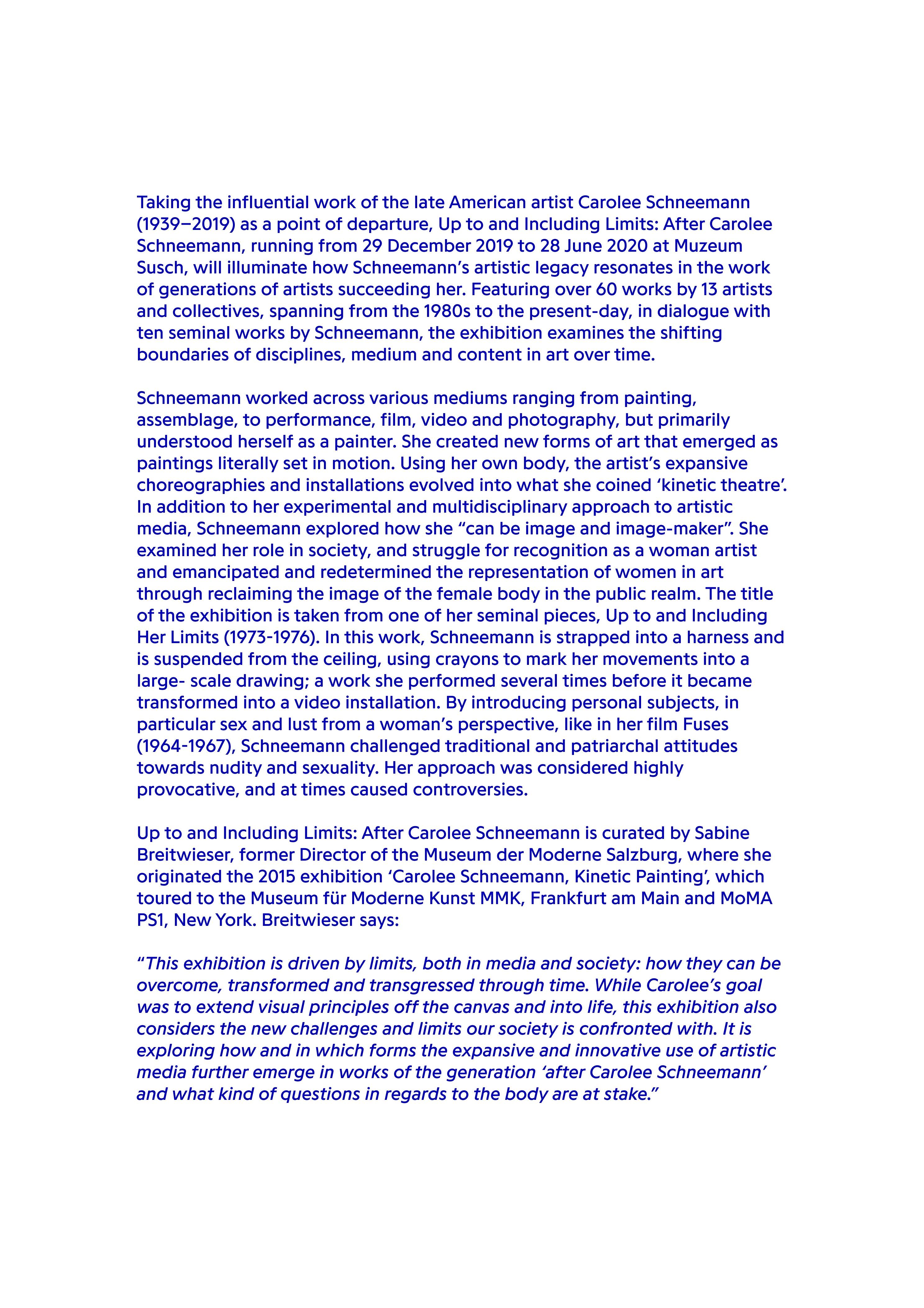 Up to and Including Limits: After Carolee Schneemann