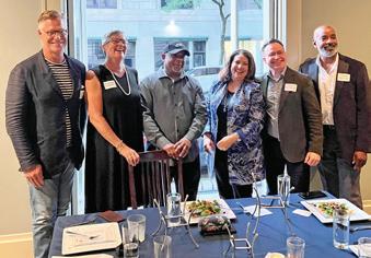 The alumni office brought the Hawk Nation flag to Chicago on Sept. 20 to update alumni about the school’s progress and to share memories. Sharing the moment were (from left) Lynn Casto, Head of School, Marck Bailey, Grace O’Leary ’16, Randall Samborn ’75, Eli Kaufman ’11, Max Kaufman ’13, Laura Sowatsky ’84, Christopher Holinski, director of advancement, and Peter and Mary (Hutton) Burgi ’79.