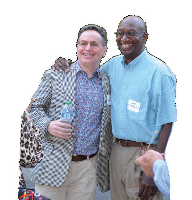 Sharing a laugh at the Fall Reunion were Robert McCreery ’82 and Jewel Woodard ’77.
