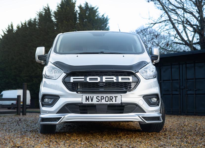 T he Ford Transit Custom MV Sport Edition features 18″ alloys, colourcoded handles, mirrors and trim, roof rails, Raptor grille, window & bonnet deflectors, side skirts and a front and rear spoiler.