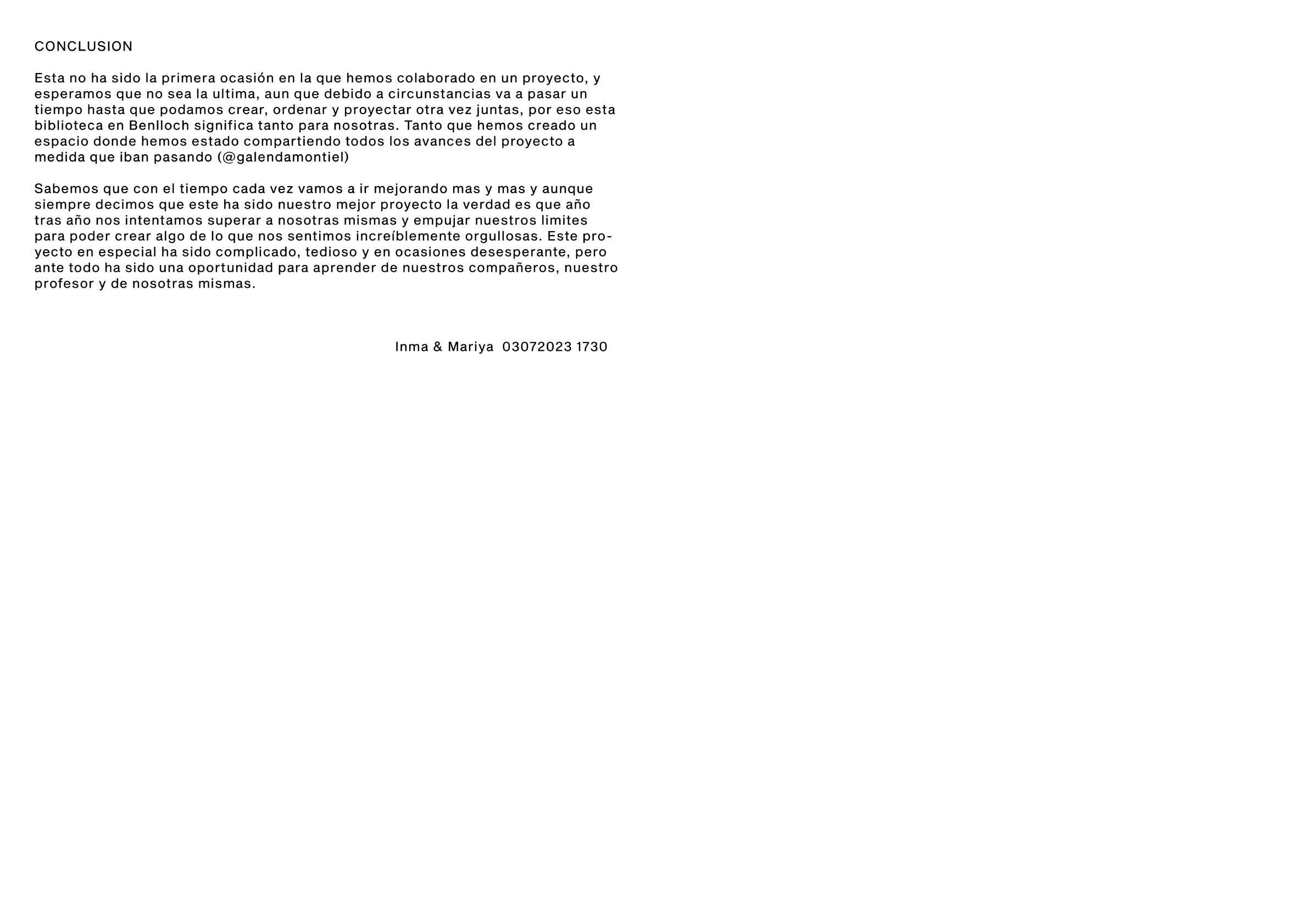 articular el espacio para que cada ámbito pueda desarrollarse de la mejor manera posible. La relación entre estos tres patios es muy importante sobretodo entre los dos cerrados, ya que el centro de comunicación de la manzana se situara entre estos dos. sitúa un gran patio central con una fuente y sitios para sentarse. Todo esto simboliza el mundo de los libros, donde te adentras en este dejando atrás la vida tal y como la conocemos. La biblioteca se desarrolla de manera helicoidal. El patio central y las lila biblioteca sin necesidad de levantar ningún tabique que obstruya el lugar. Al entrar hay una zona para niños mas abierta con muebles diseñados especialmente para ellos y con mucho espacio para poder jugar, bajando las escaleras tenemos las grade trabajo y al fondo el espacio de estudio intenso, diferenciado de los demás por la