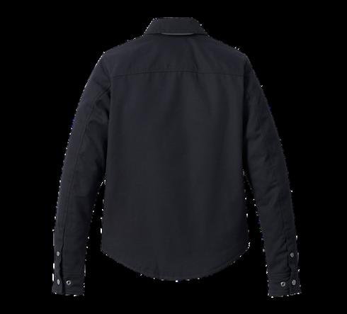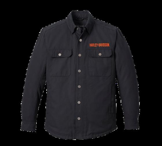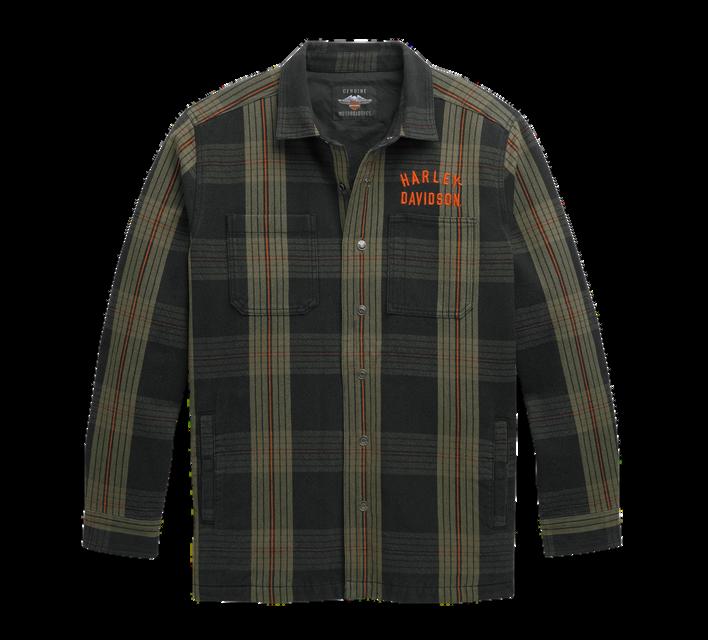 Enduring comfort and style reign in our Forever Harley Canvas Jacket. This limited edition in a traditional and slim fit custom silhouette is made from rugged cotton canvas with a cozy brushed plaid flannel lining. It sensibly features ample pockets plus an interior stash pocket, an action back, and a hidden snap down collar that won’t flap around when you ride. Our woven label graces the front while our arched branding fills the back for a look that’s forever Harley-Davidson