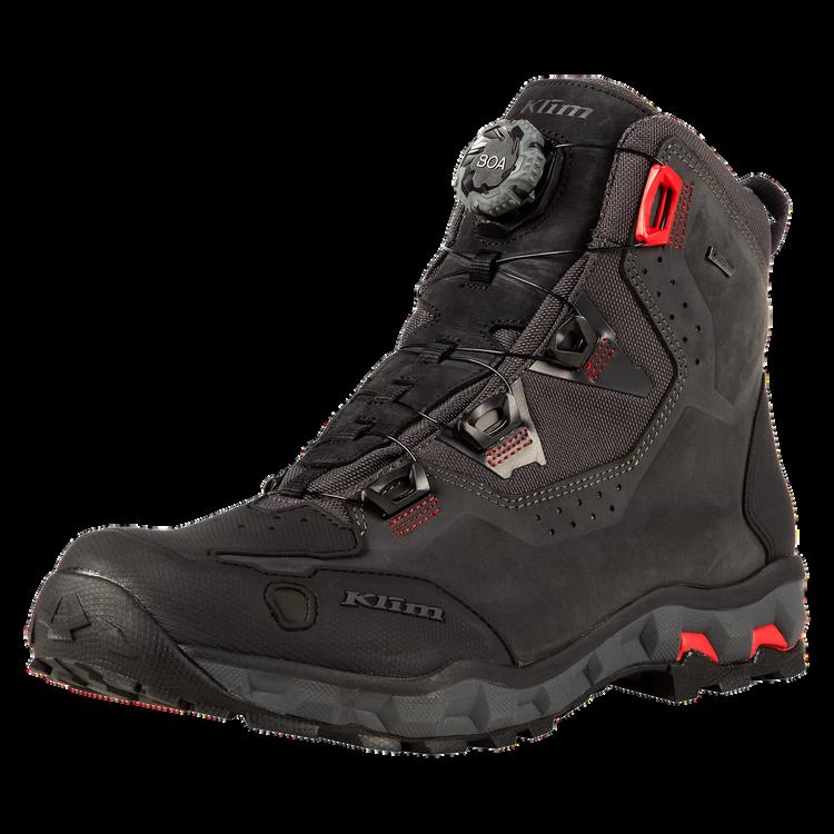"D3O" ankle-cups. Laces and zipper combined closure. Dual-compound high-grip Vibram sole.