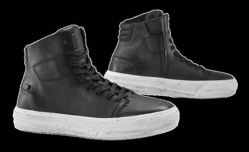 oil-treated leather upper and "Micro-Synth" ventilated lining. "D3O" reinforced ankle cups. Laces and zipper combined closure. High-grip rubber sole.