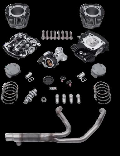 Stage IV Kit was designed to deliver maximum horsepower – all the way to the redline. Features new CNC-ported heads with 1mm bigger valves and fully machined combustion chambers. Coupled with the kit's high-lift SE8-517 cam, high compression pistons and a 64mm throttle body and intake manifold, this combination delivers a thrilling 126 ft lb of torque and 121 HP rear wheel output when paired with Screamin' Eagle Street Cannon Mufflers Fits '17-later Touring models equipped with air/Oil-Cooled Milwaukee-Eight 107CI engine. Does not fit Trike models. '17 '19 models require separate purchase of High-Capacity Oil Pump P/N 62400247. '17-'18 Screamin' Eagle High-Capacity Clutch Plate Kit P/N 37000258. All models require ECM recalibration with the Pro Street Tuner or dealership installed Screamin' Eagle calibration for proper installation.