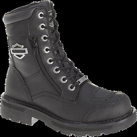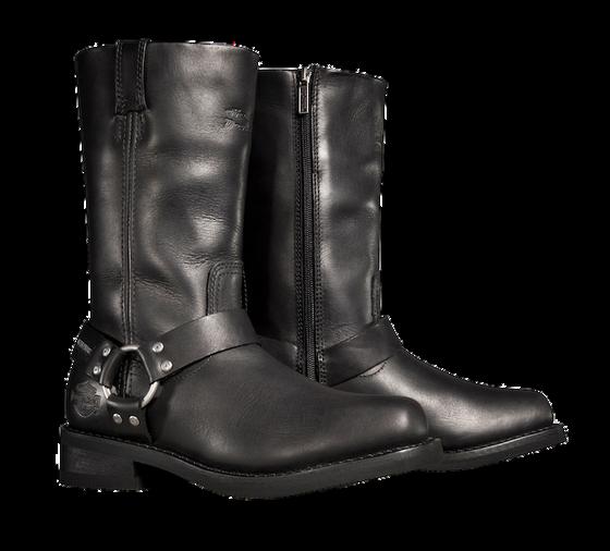 $225 $245 Mountainview's Christmas Wish Book Gifts Located At Mountainview Harley-Davidson® Mackey Black Or White Dare to be seen in the Mackey Performance Riding Shoes. These leather motorcycle shoes have a reflective material stripe and reflective laces to improve your chances of being seen. Ankle protection is flexible and lightweight for greater comfort and soft to the touch, yet “freezes” on impact providing superior protection. You’ll have protection from the elements with a waterproof membrane lining and waterproof leather exterior to shield from heat and debris. Sydney Boot Full grain leather upper with Tech Tuff overlays YKK locking inside zipper Outside air vent zipper Full length cushion sock lining Lightweight EVA/rubber outsole Goodyear welt construction Shaft height: 6", Heel height: 1.5" Ladies Footwear: Page 17