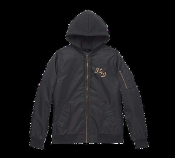 Stay toasty in nippy temps while repping your favorite motorcycle brand in our Limited Edition Forever Harley Quilted Jacket. Available in a traditional and slim fit custom silhouette, it’s poly filled and made from a cozy blend of nylon and woven cotton. Features allover quilting, a drawcord hood to keep the wind out, and comfortable rib-knit cuffs. Its understated style is simply branded with our woven label, so feel free to amp it up with your bolder H-D layers underneath.