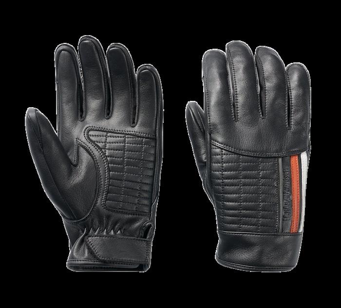 Mens Riding Gear: P 31 $110 Mountainview's Christmas Wish Book Gifts Located At Mountainview Harley-Davidson® South Shore Gloves Fit & Mobility: Comfort seams. 30° pre-curved fingers. Velcro® wrist closure. Materials: Goatskin leather. 100% polyester tricot lining. Additional Features: Padded palm and touchscreen compatible. Design Details: Dimensional H-D stripe at finger. $110 South Shore Nuckle Gloves