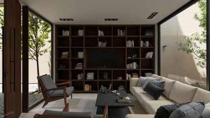 La distribución interna crea patios que ofrecen amplitud y flexibilidad espacial, rememorando la arquitectura mexicana. Un patio con espejo de agua brinda una cálida bienvenida. La fachada sobria y el ritmo arquitectónico garantizan privacidad y asombro, mientras que los patios internos celebran la luz natural y la amplitud espacial. Conoce el desarrollo y aprovecha la preventa de esta casa muestra.