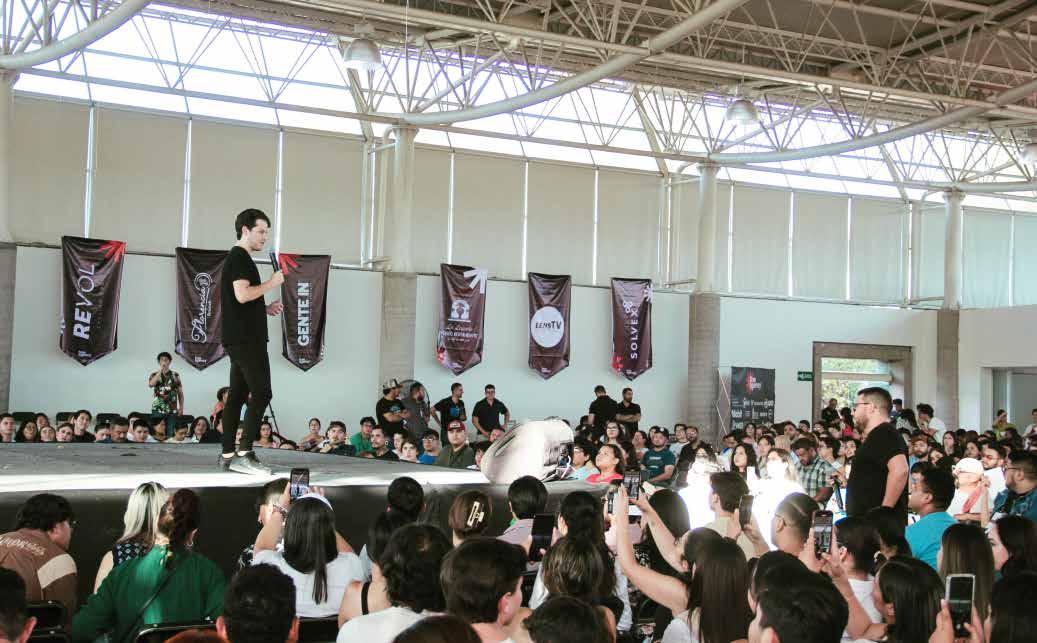 Roberto Martínez, creador de contenido con más de 11 millones de seguidores, reunió a más de 1300 personas en la Sala Magna del Centro Platero de Zacatecas. Durante el evento, Roberto realizó un pódcast en vivo, respondiendo a preguntas del público.