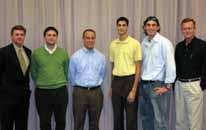 Remember the Publisher’s Clearing House prize patrol commercials? Some unsuspecting person opens the front door to be greeted by congratulatory strangers with balloons, cameras and a larger-than-life check. Nick Myers (’02, pictured right), music teacher at Roosevelt Middle School in Newark, Ohio, was not visited by the prize patrol. However, the school superintendent, school principal and two Licking County Foundation representatives recently walked into his classroom, school news cameras rolling, to announce that he was the Intermediate Grade Level 2004-05 Leaders for Learning Award recipient for teaching excellence in Newark City Schools.